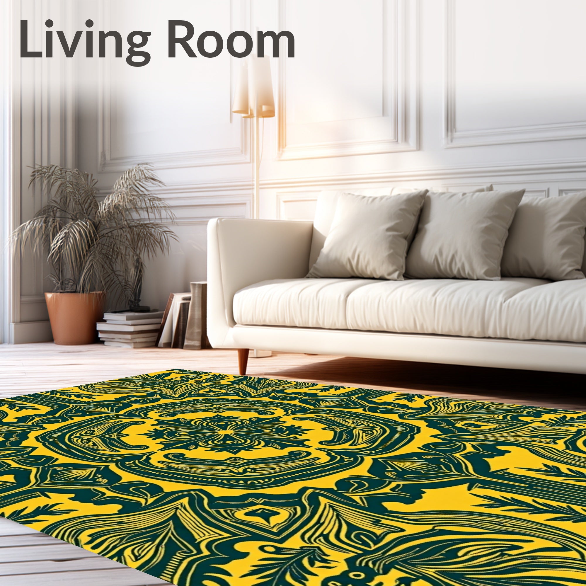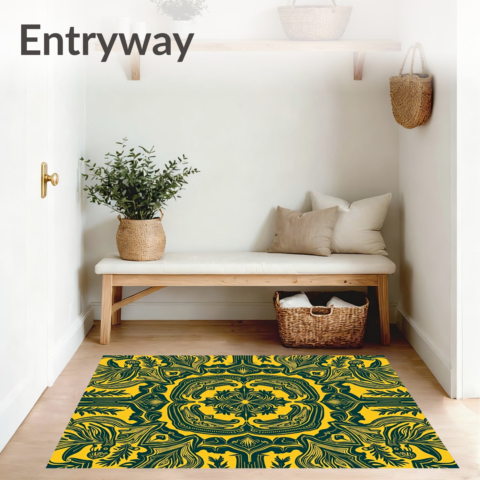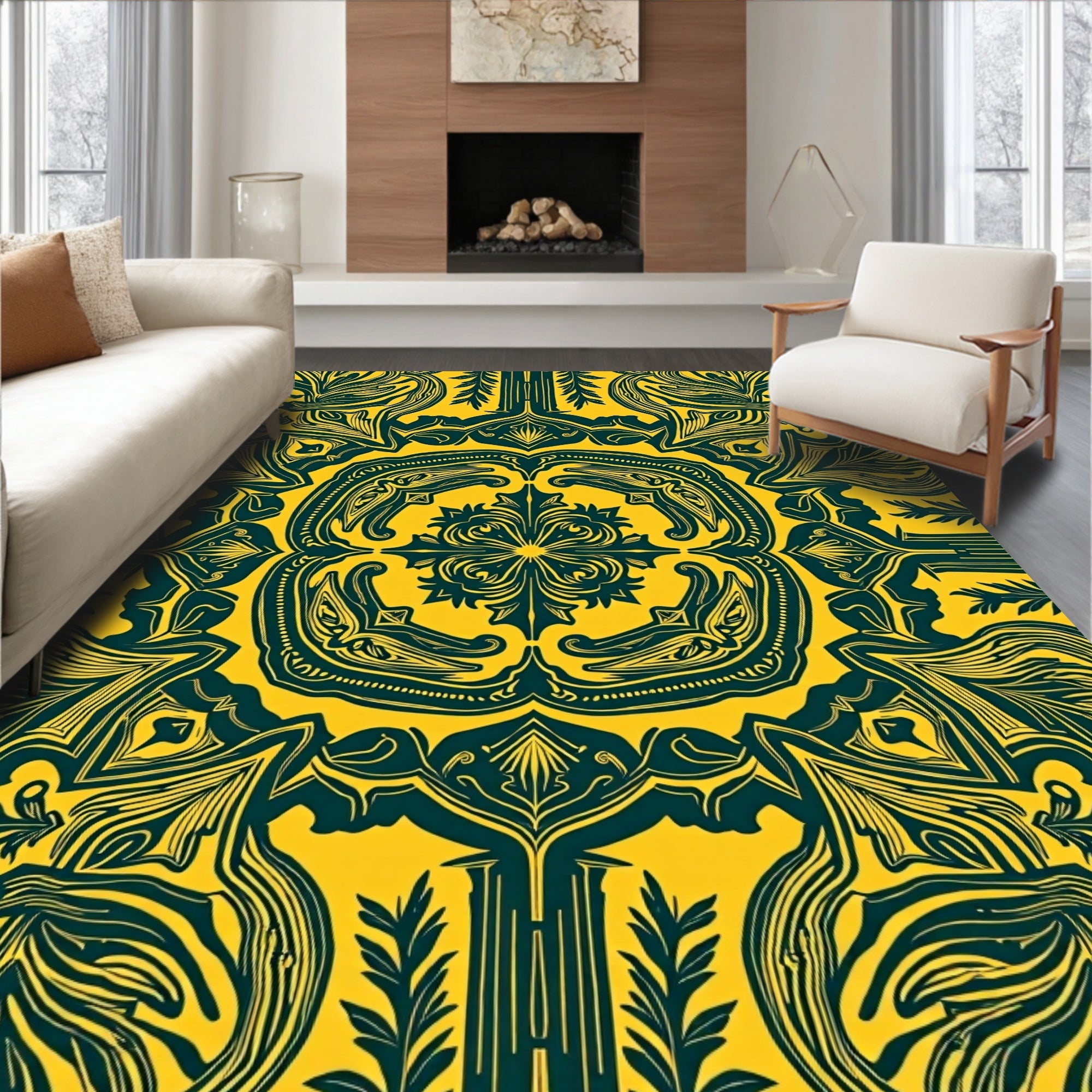 Flatwoven High Traffic Area Rug, Holiday Forest Interlocking with Gold Filigree Highlights, Non Slip, Stain Resistant, Washable Area Rugs for Living Room, Bedroom (Yellow) Overview:
