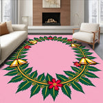 Ultra Soft Area Rug, Non Slip, Stain Resistant, Washable Area Rugs for Living Room, Bedroom, Holiday Laurel Wreath with Jingle Bells and Snowflake Filigree(Pink) Overview: