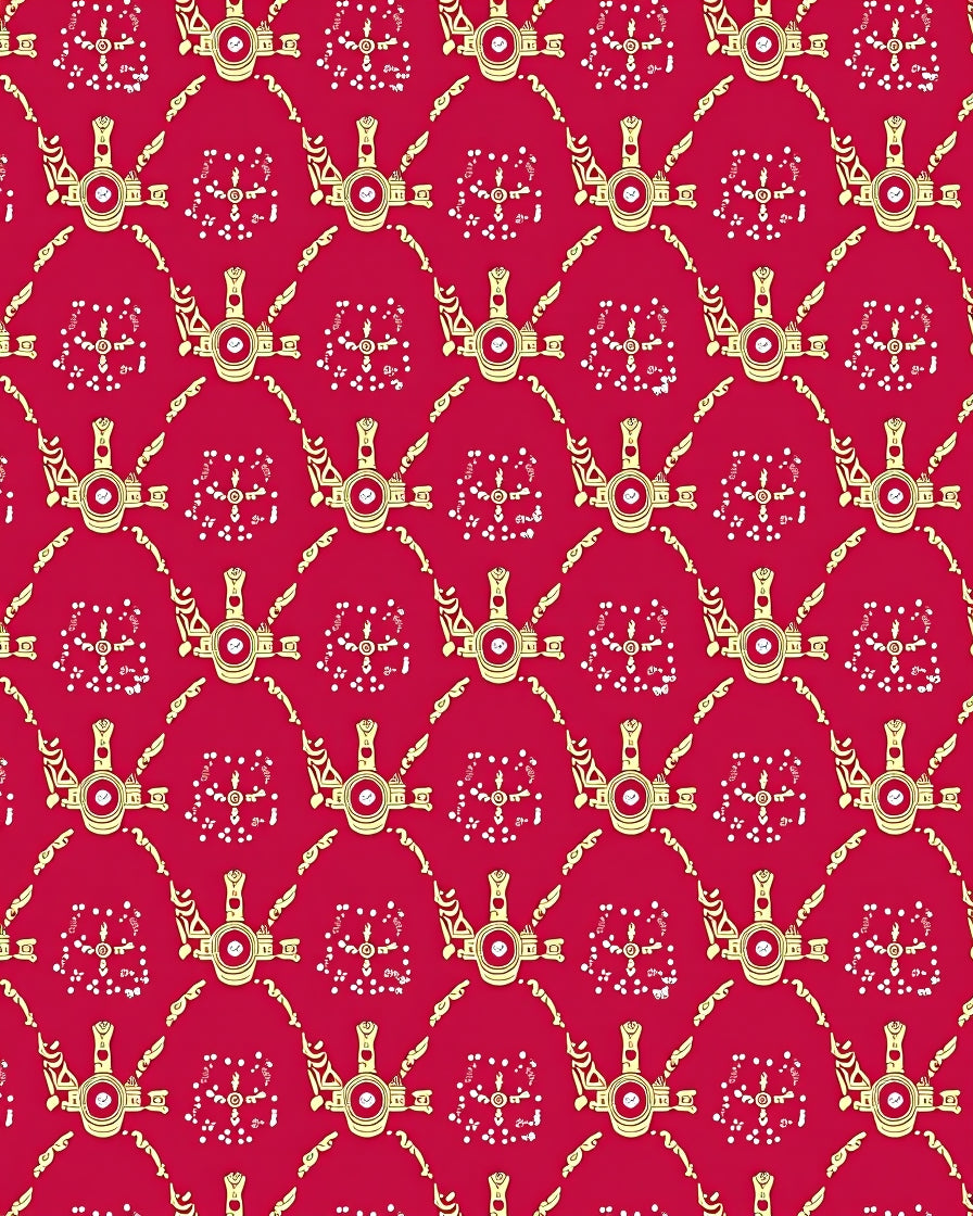 Holiday Marquetry Featuring Interlocking Ornaments and Twinkling Snow(Red)