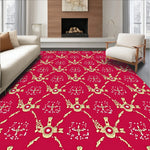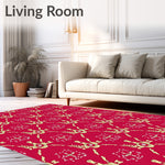 Ultra Soft Area Rug, Non Slip, Stain Resistant, Washable Area Rugs for Living Room, Bedroom, Holiday Marquetry Featuring Interlocking Ornaments and Twinkling Snow(Red) Overview: