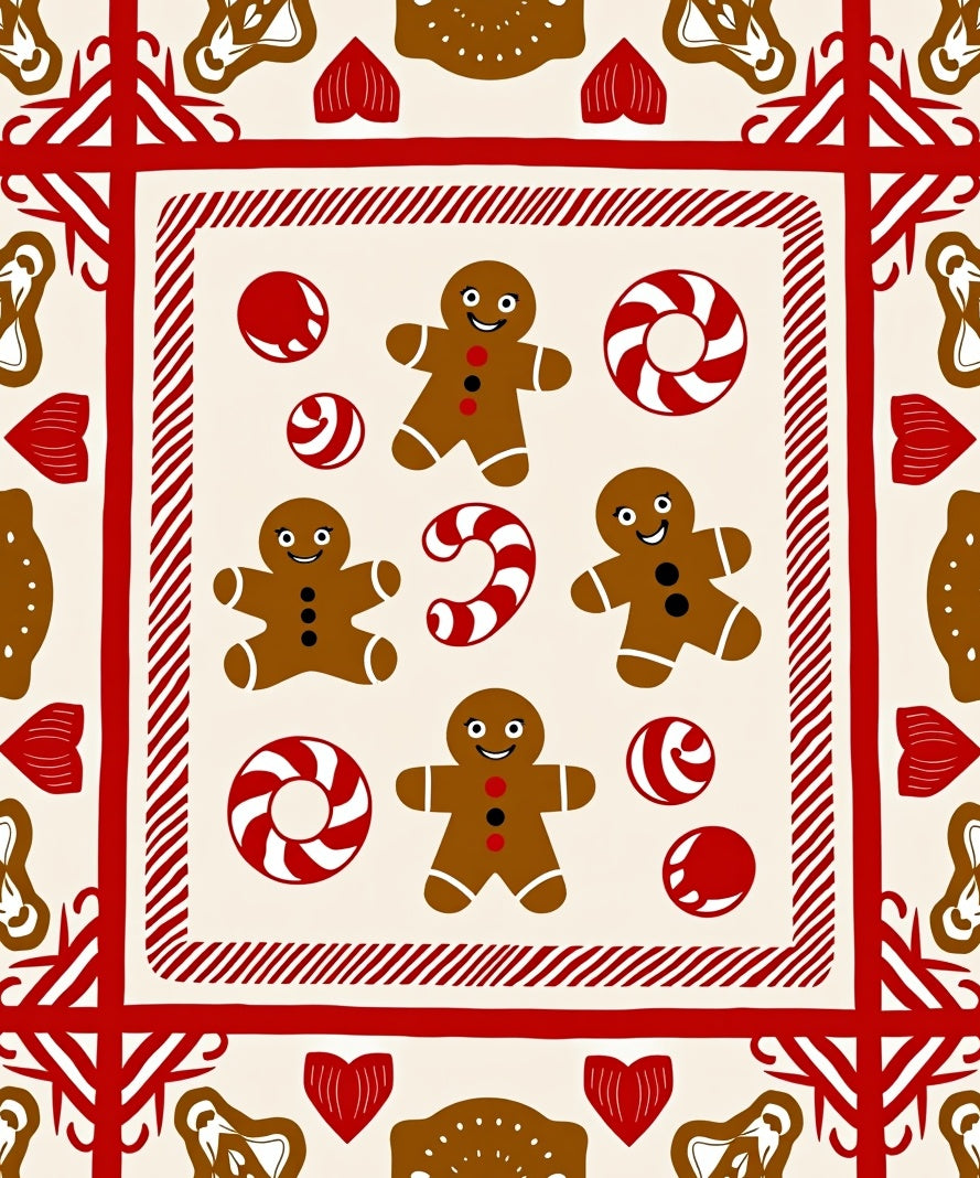 Holiday Motif Featuring Gingerbread Figures and Stripes(Red)