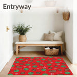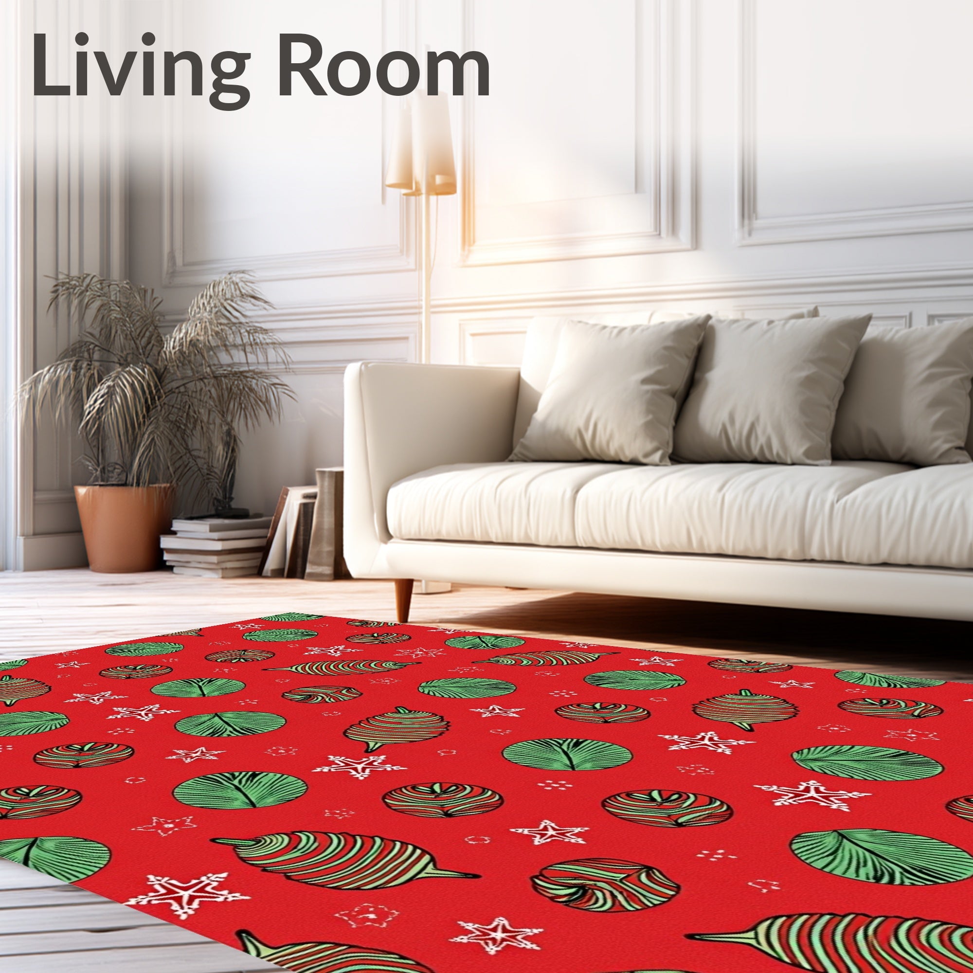 Ultra Soft Area Rug, Non Slip, Stain Resistant, Washable Area Rugs for Living Room, Bedroom, Holiday Pinecone Medley Motif with Frosted Accents(Red) Overview: