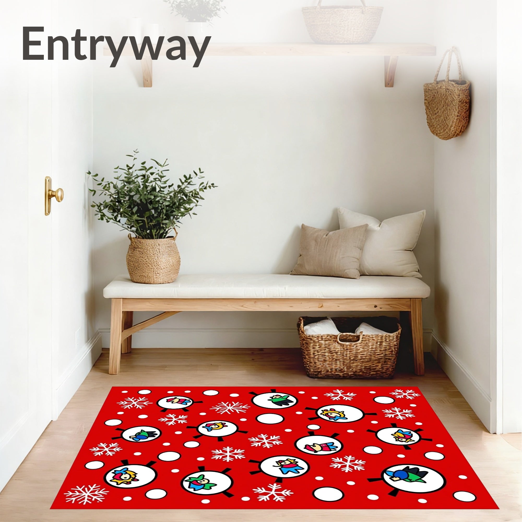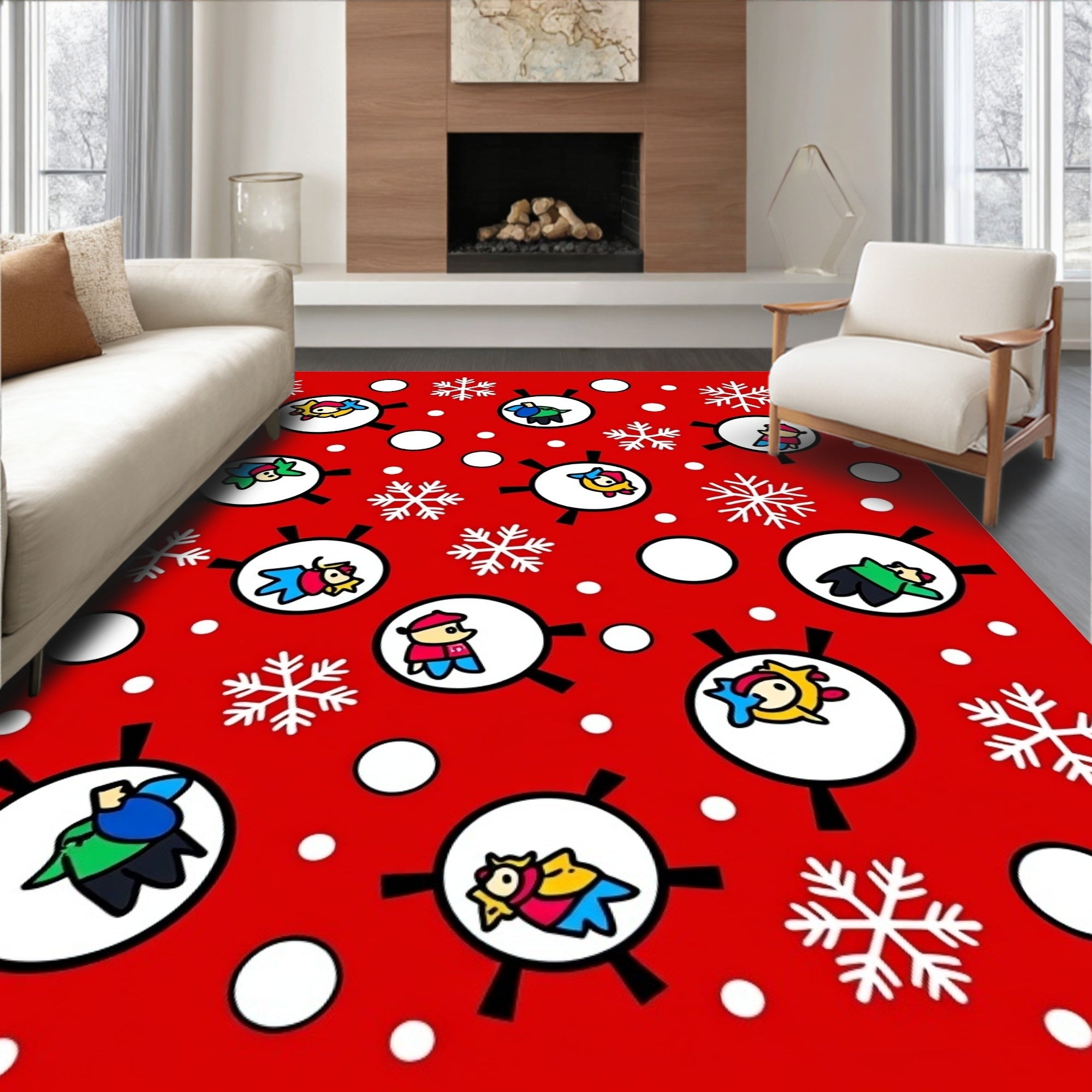 Ultra Soft Area Rug, Non Slip, Stain Resistant, Washable Area Rugs for Living Room, Bedroom, Holiday Snowball Fight Scene Festive with Playful Characters(Red) Overview: