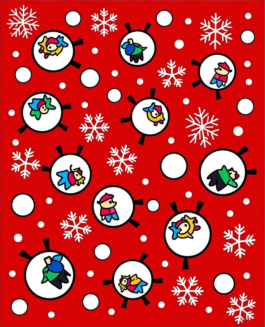Holiday Snowball Fight Scene Festive with Playful Characters(Red)
