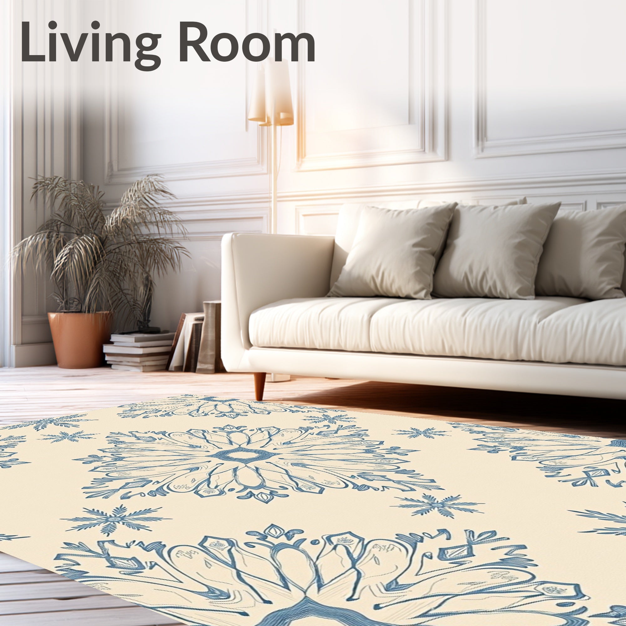 Flatwoven High Traffic Area Rug, Holiday Snowflake Festive Floor with Winter Magic, Non Slip, Stain Resistant, Washable Area Rugs for Living Room, Bedroom (Beige) Overview: