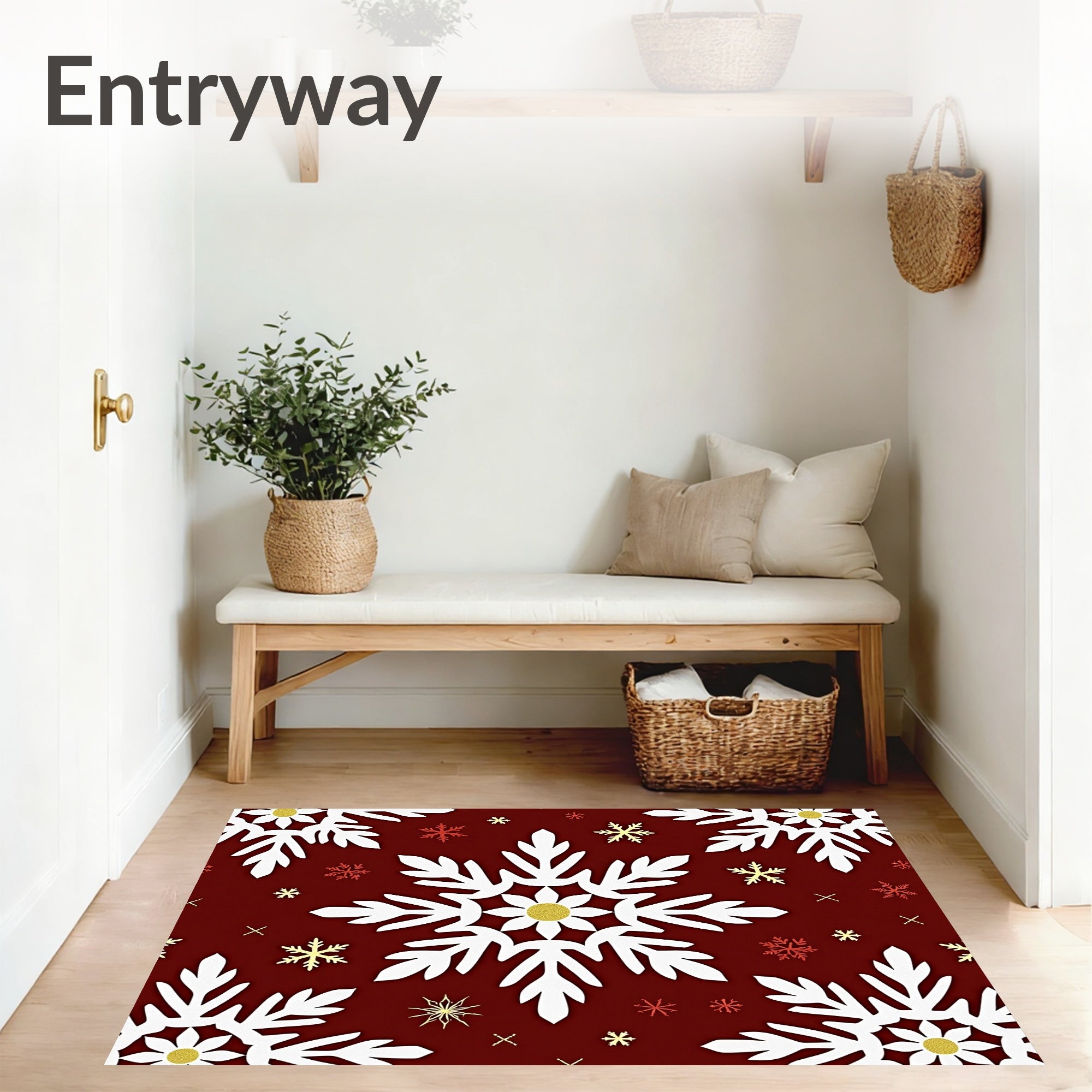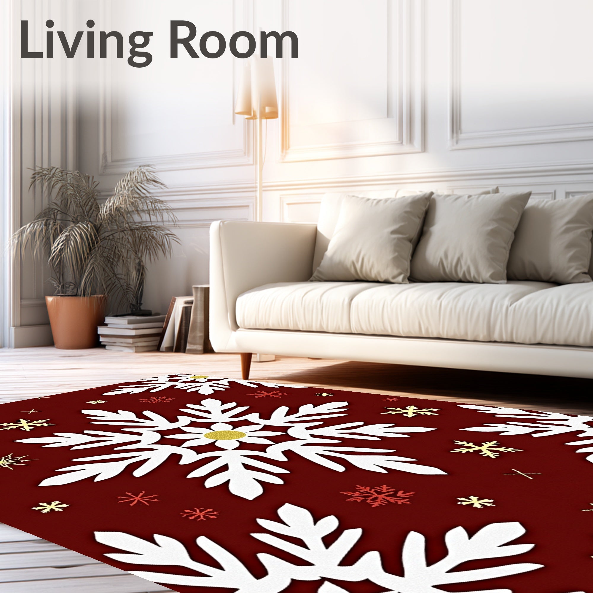 Ultra Soft Area Rug, Non Slip, Stain Resistant, Washable Area Rugs for Living Room, Bedroom, Holiday Snowflake Machine Anti Slip Accent(White) Overview: