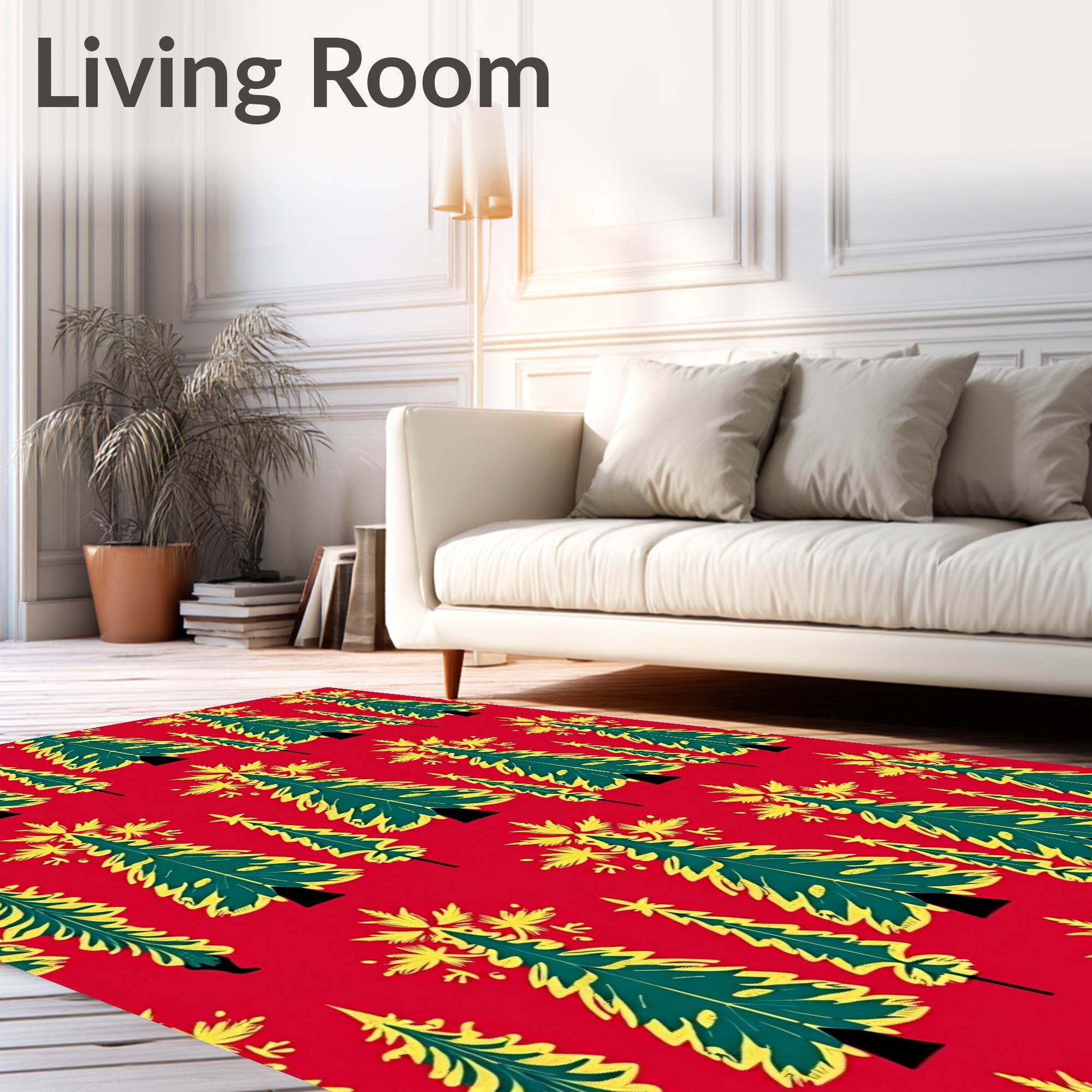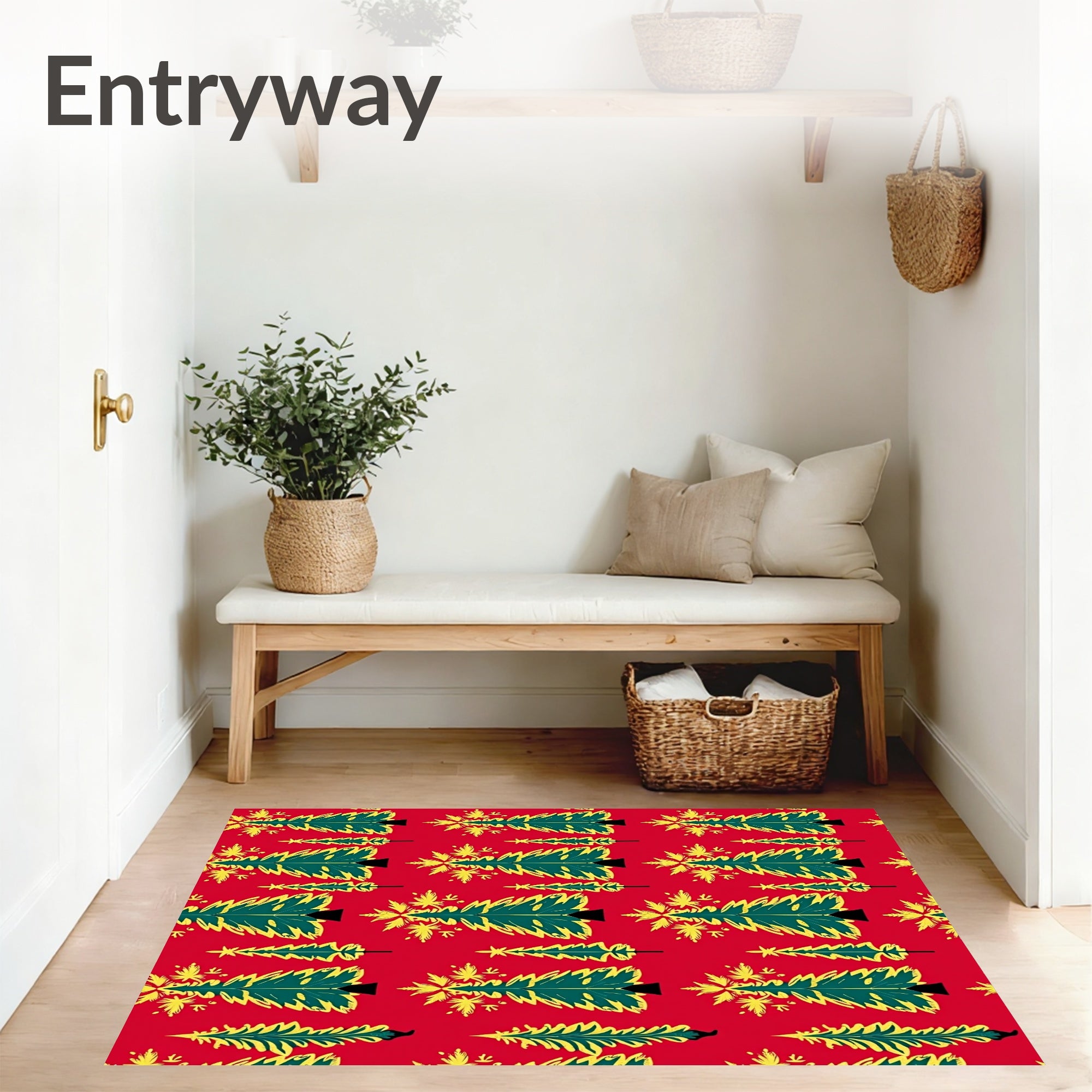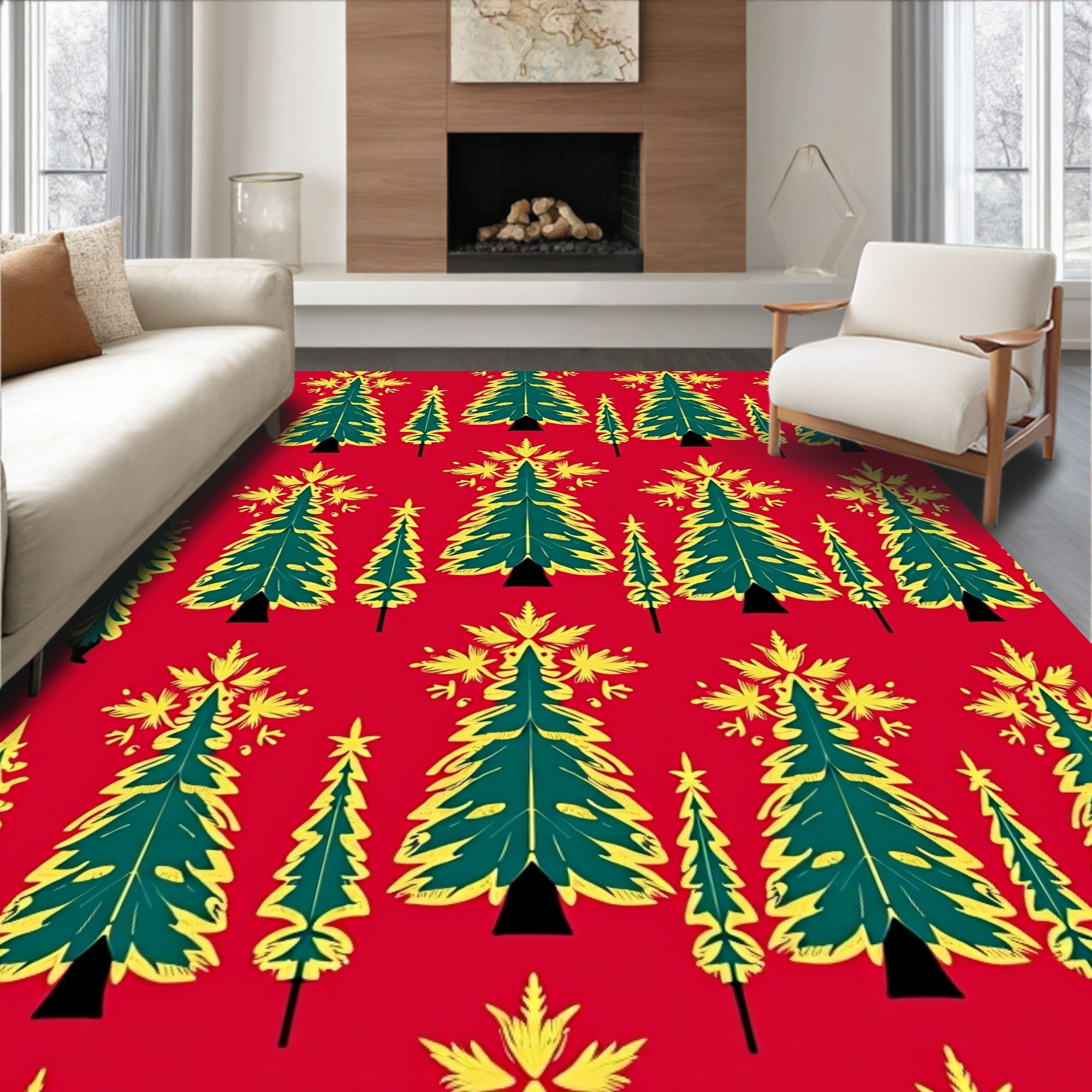 Ultra Soft Area Rug, Non Slip, Stain Resistant, Washable Area Rugs for Living Room, Bedroom, Holiday Tree Array with Radiant Starburst(Red) Overview: