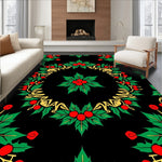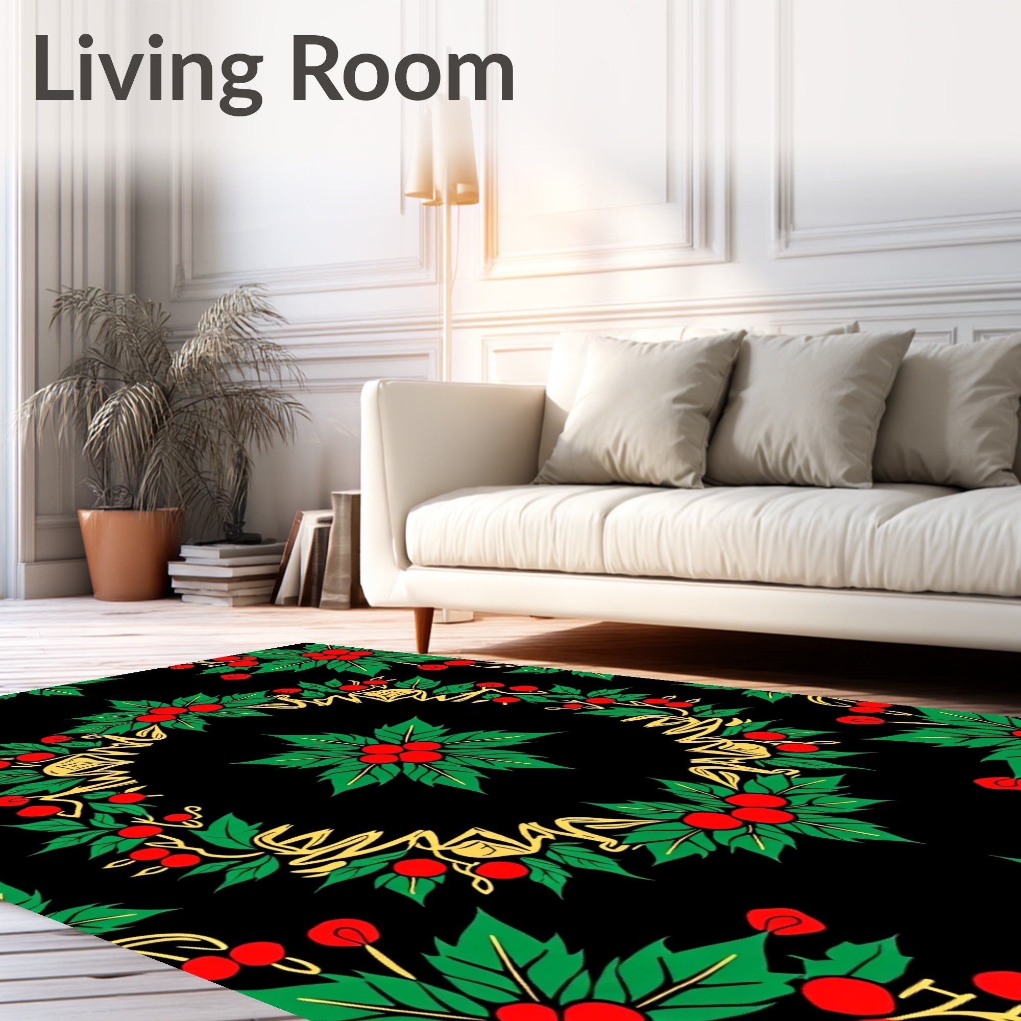 Ultra Soft Area Rug, Non Slip, Stain Resistant, Washable Area Rugs for Living Room, Bedroom, Holly Berry Wreath Traditional Seasonal Decoration Entrance(Black) Overview: