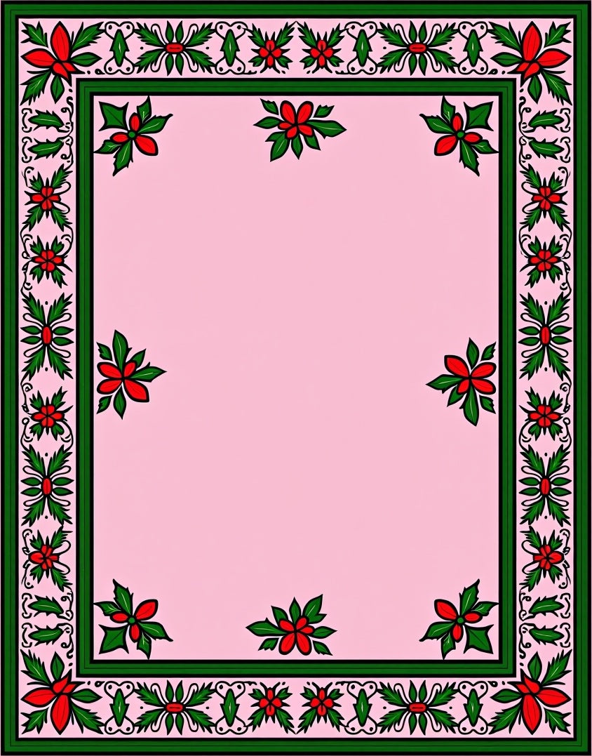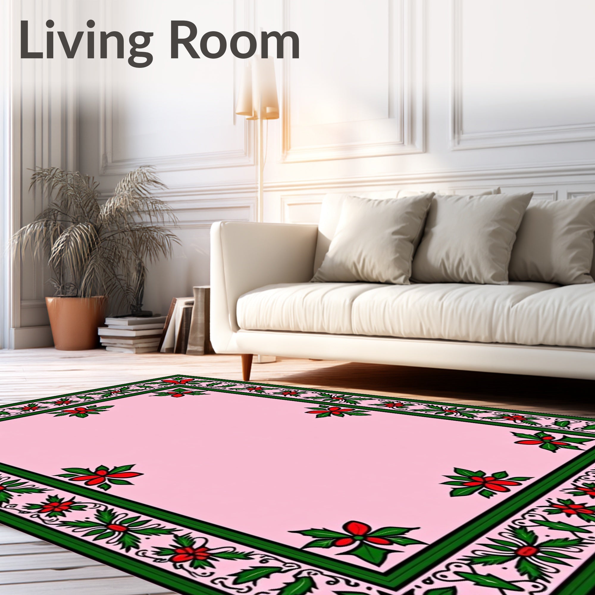 Flatwoven High Traffic Area Rug, Holly Wreath Medallion with Festive Berry Motifs, Non Slip, Stain Resistant, Washable Area Rugs for Living Room, Bedroom (Pink) Overview: