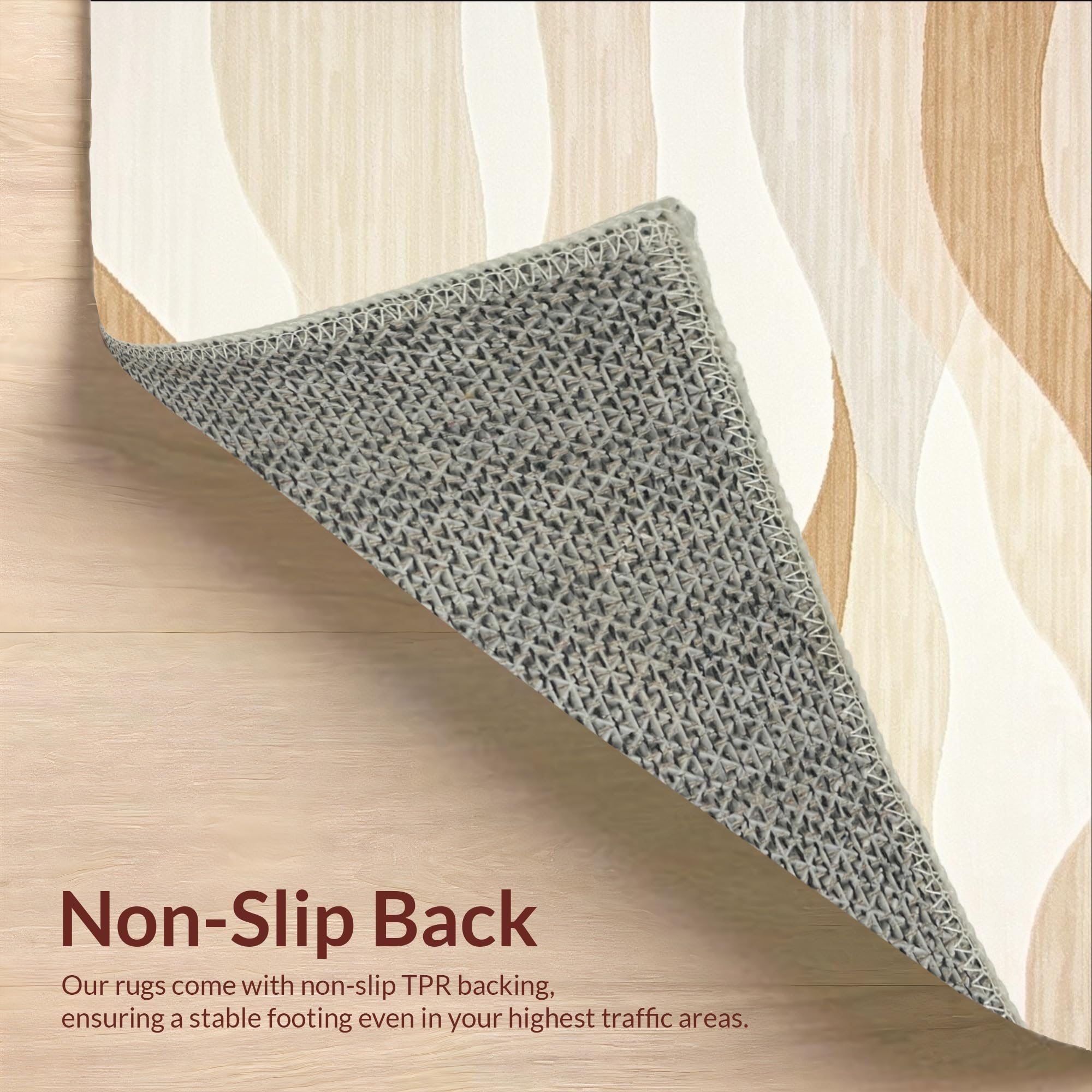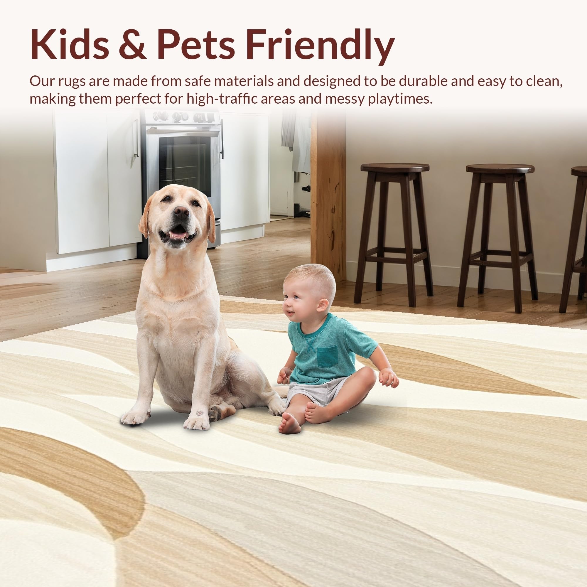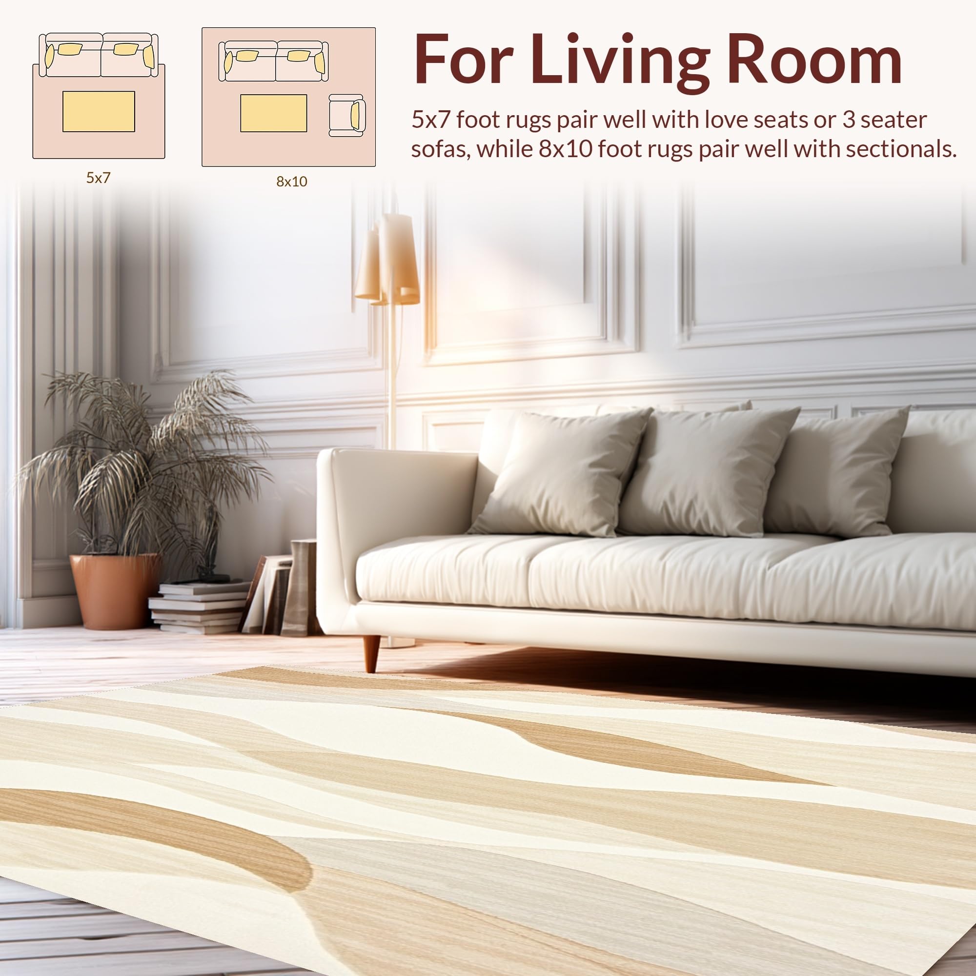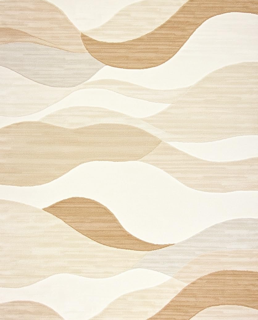 Ultra Soft Area Rug, Non Slip, Stain Resistant, Washable Area Rugs for Living Room, Bedroom, Horizon Haze Contemporary Area Featuring Wave(Beige) Overview: