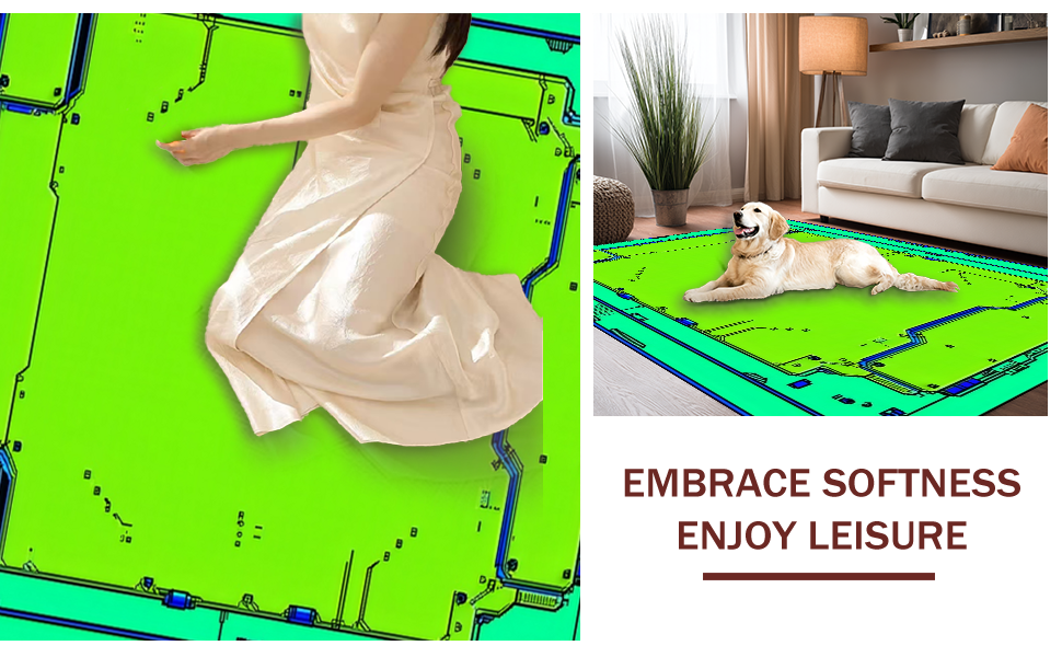 Ultra Soft Area Rug, Non Slip, Stain Resistant, Washable Area Rugs for Living Room, Bedroom, Illuminated Modern Visual Play(Green) Overview: