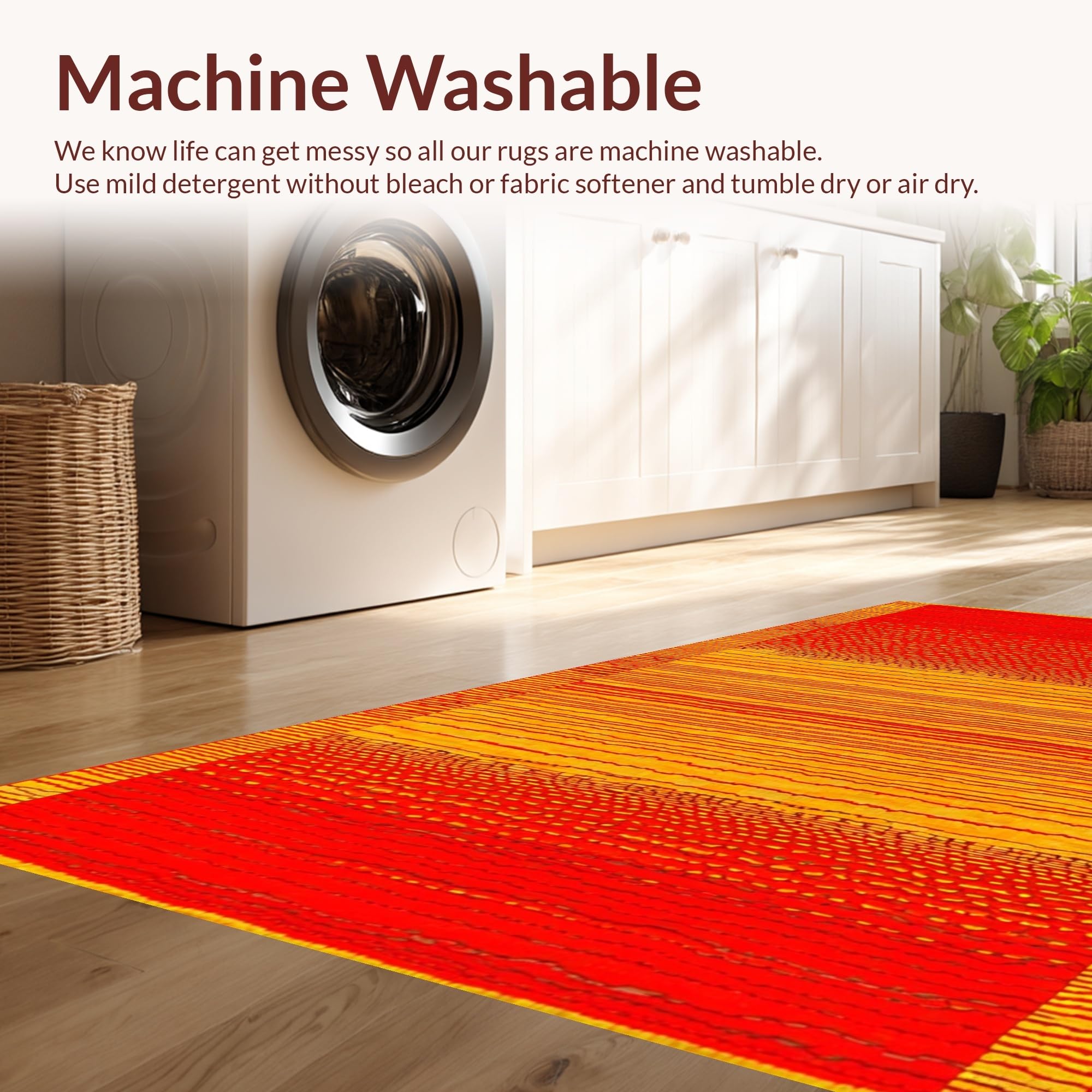 - Machine Washable: Our rugs can be easily thrown in the wash machine.