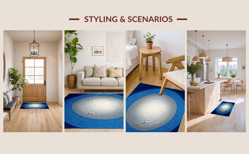 Ultra Soft Area Rug, Non Slip, Stain Resistant, Washable Area Rugs for Living Room, Bedroom, Illusory Blue Tones Pattern(Blue) Overview: