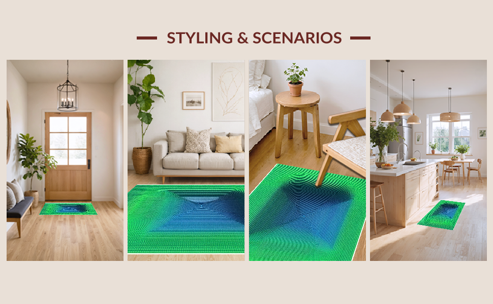 Ultra Soft Area Rug, Non Slip, Stain Resistant, Washable Area Rugs for Living Room, Bedroom, Illusory Vibrant 3D Spiral(Green) Overview: