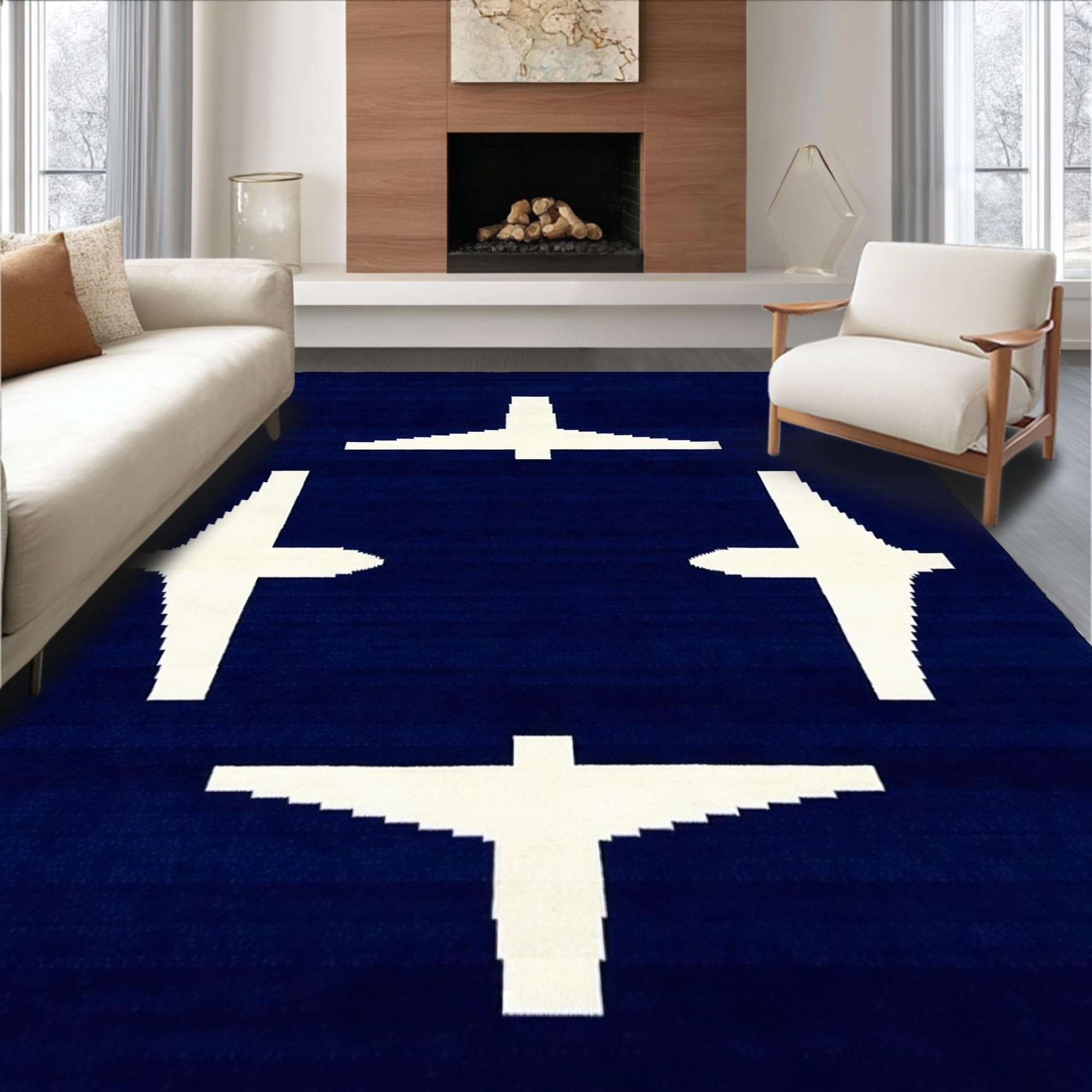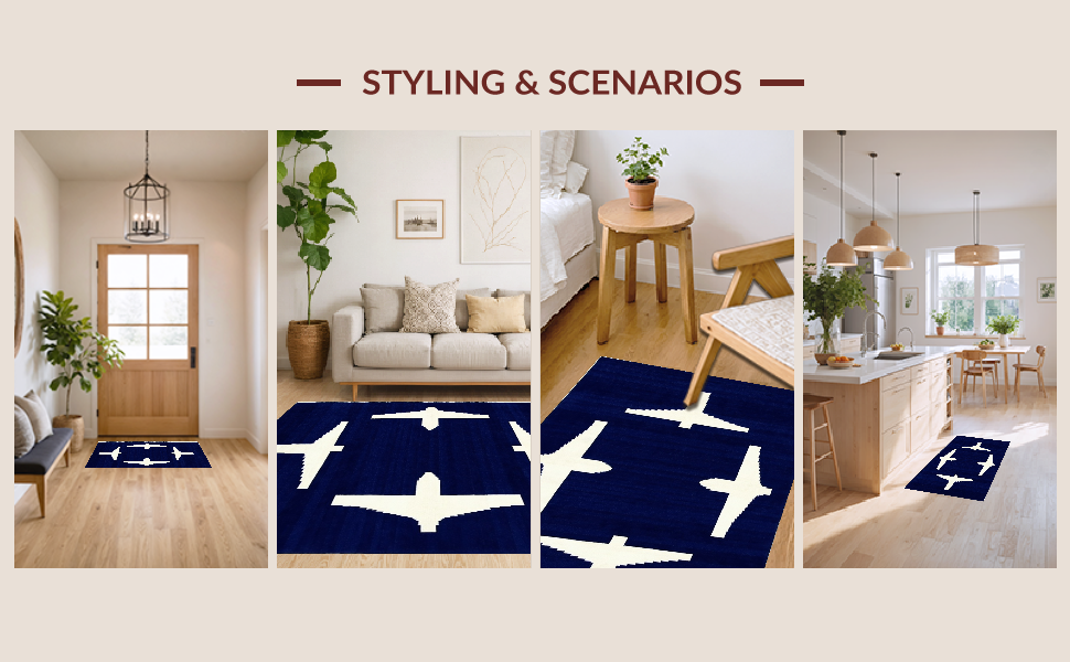 Ultra Soft Area Rug, Non Slip, Stain Resistant, Washable Area Rugs for Living Room, Bedroom, Illustrative Nautical Flight Concept(Blue) Overview: