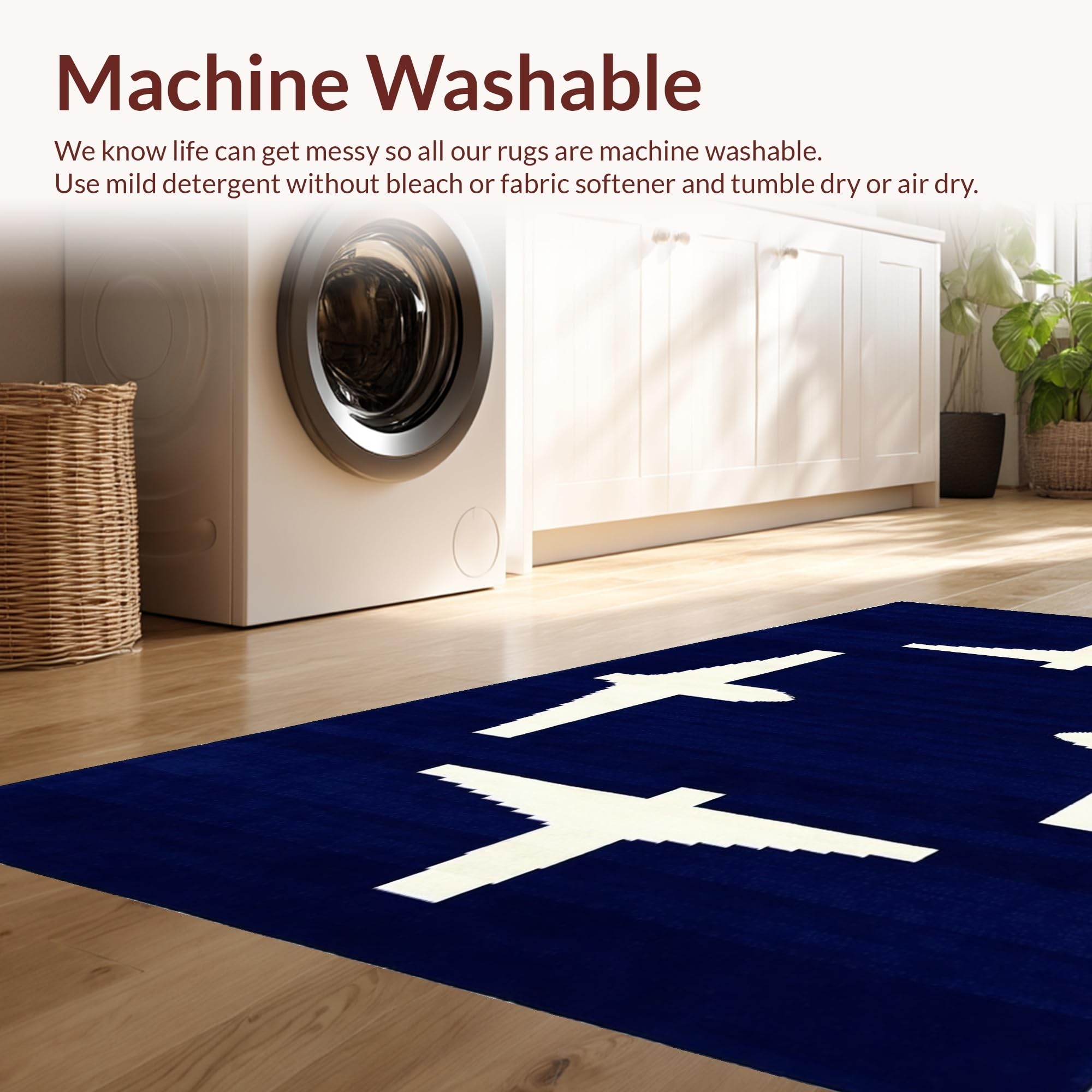 - Machine Washable: Our rugs can be easily thrown in the wash machine.