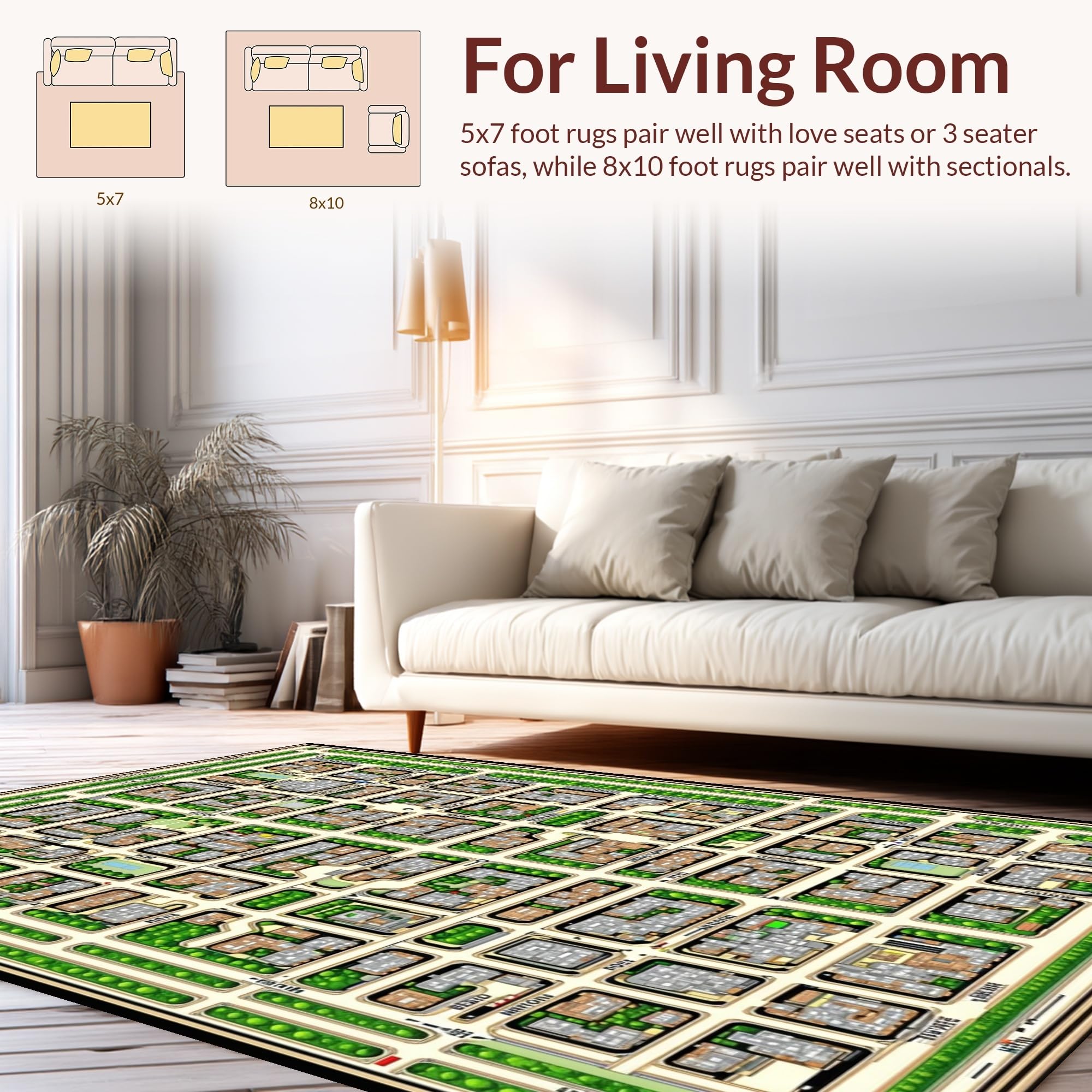 Ultra Soft Area Rug, Non Slip, Stain Resistant, Washable Area Rugs for Living Room, Bedroom, Imaginative Cityscape Exploration Rug(Gray) Overview: