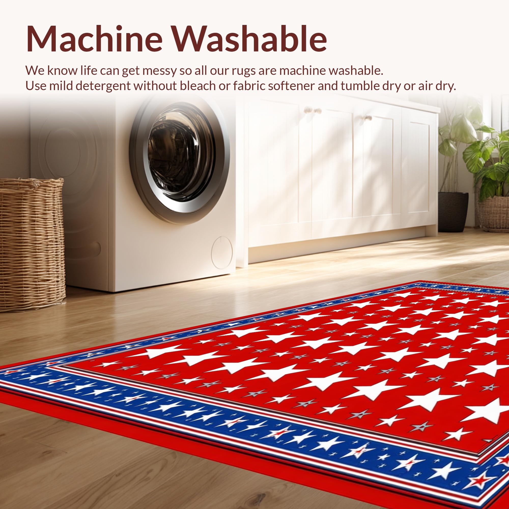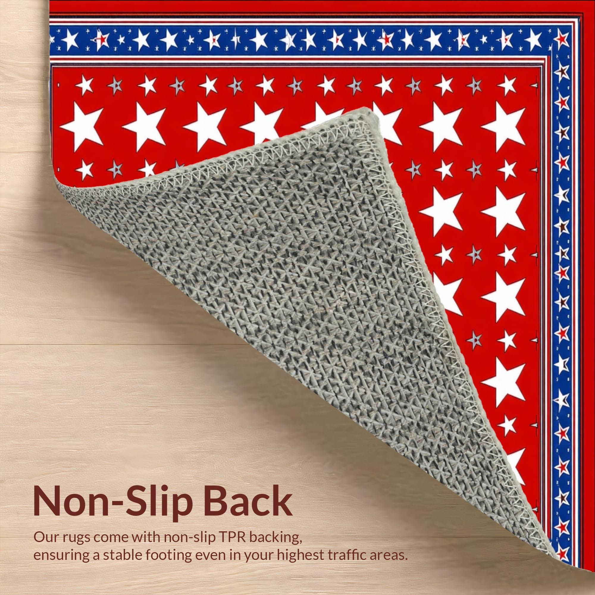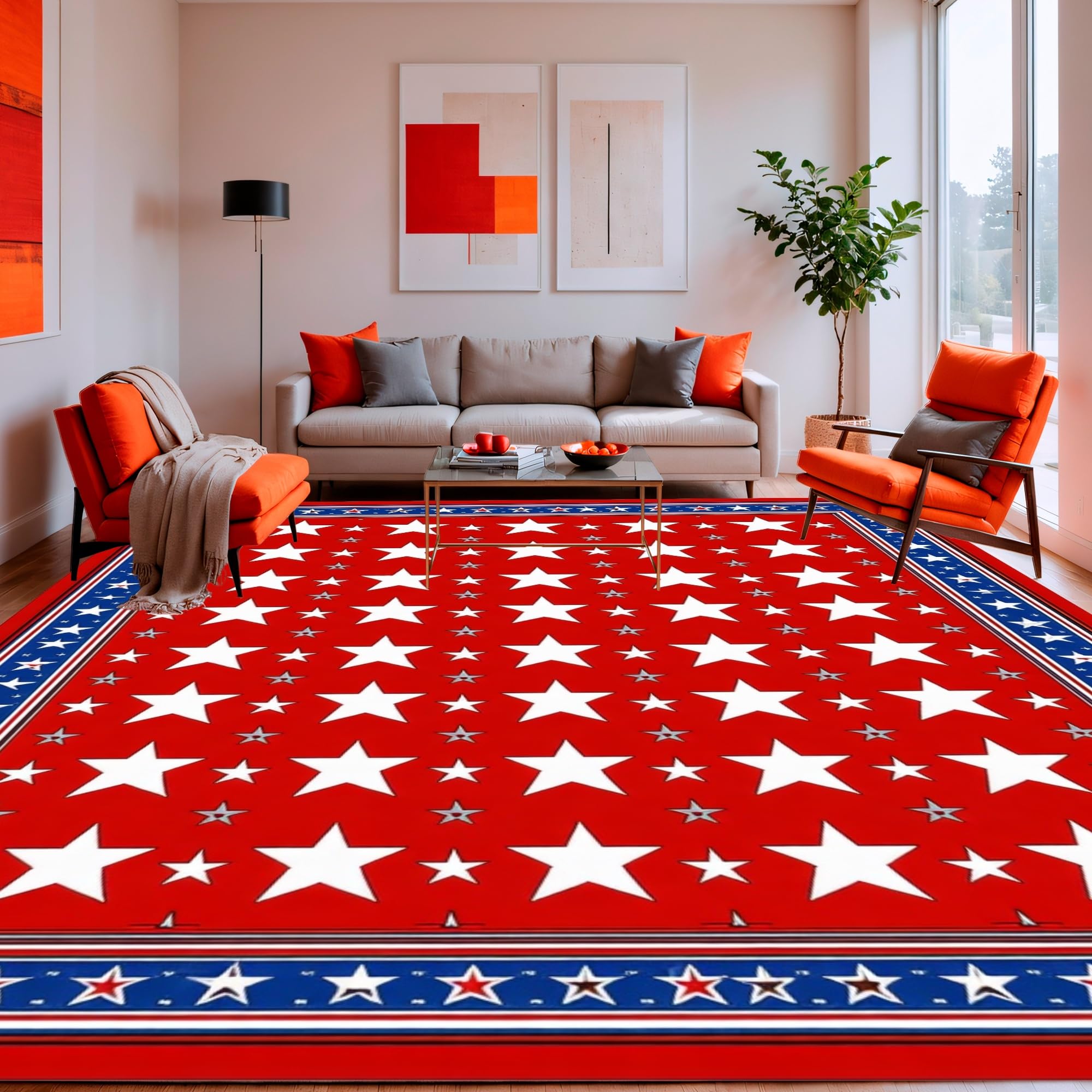 Ultra Soft Area Rug, Non Slip, Stain Resistant, Washable Area Rugs for Living Room, Bedroom, Independence Day Patriotic Area Rug with Bold Star Pattern(Red) Overview: