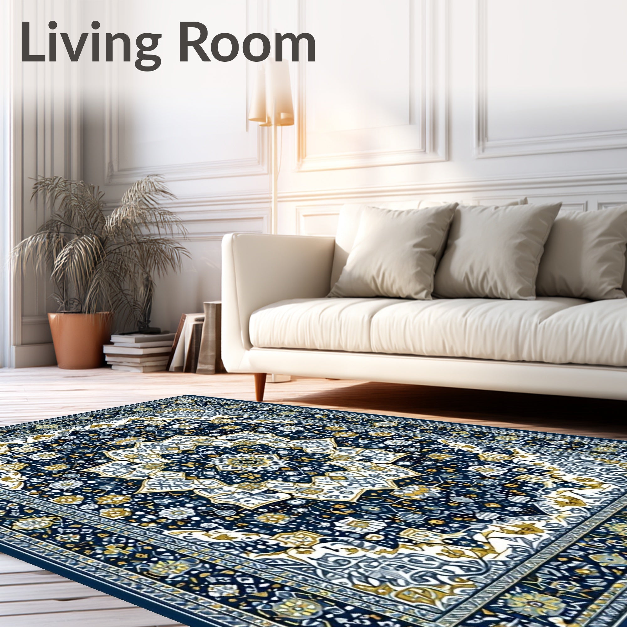 Flatwoven High Traffic Area Rug, Indoor Style, Non Slip, Stain Resistant, Washable Area Rugs for Living Room, Bedroom (Blue) Overview: