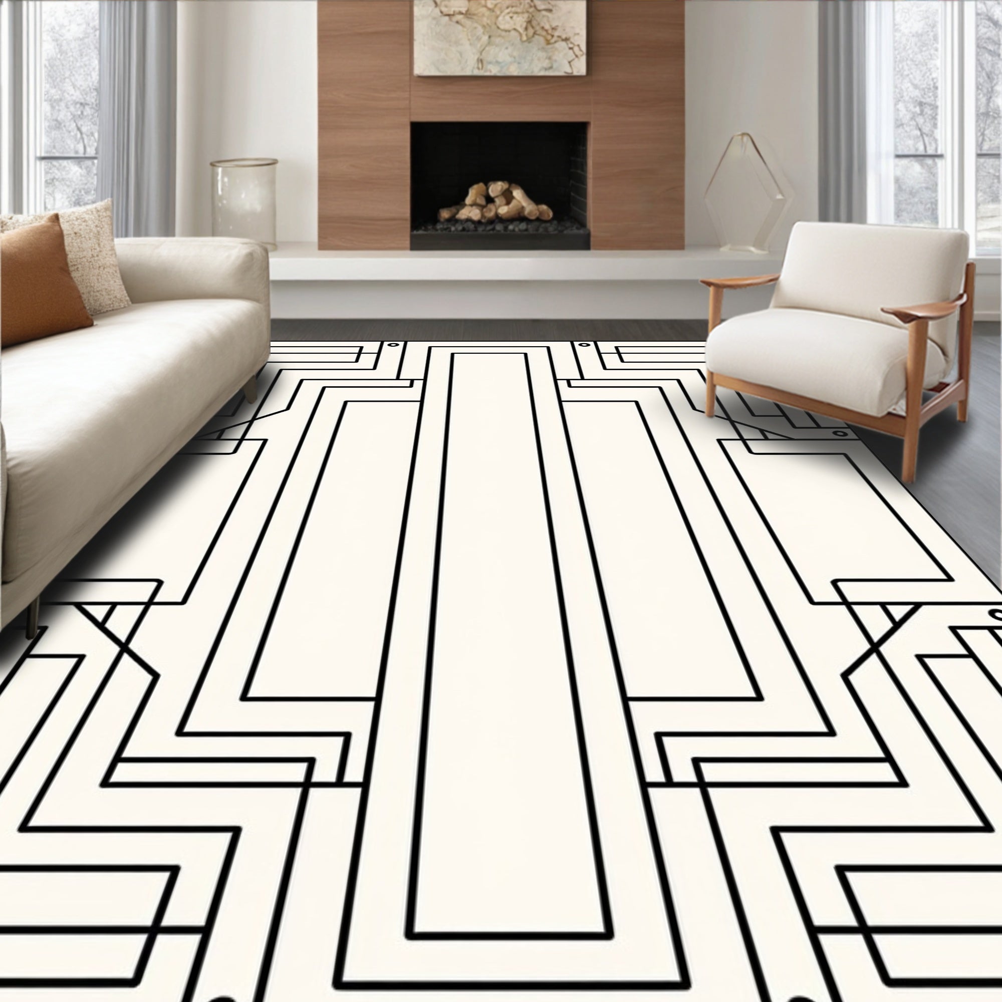 Ultra Soft Area Rug, Non Slip, Stain Resistant, Washable Area Rugs for Living Room, Bedroom, Industrial Art Interlocking Framework(White) Overview:
