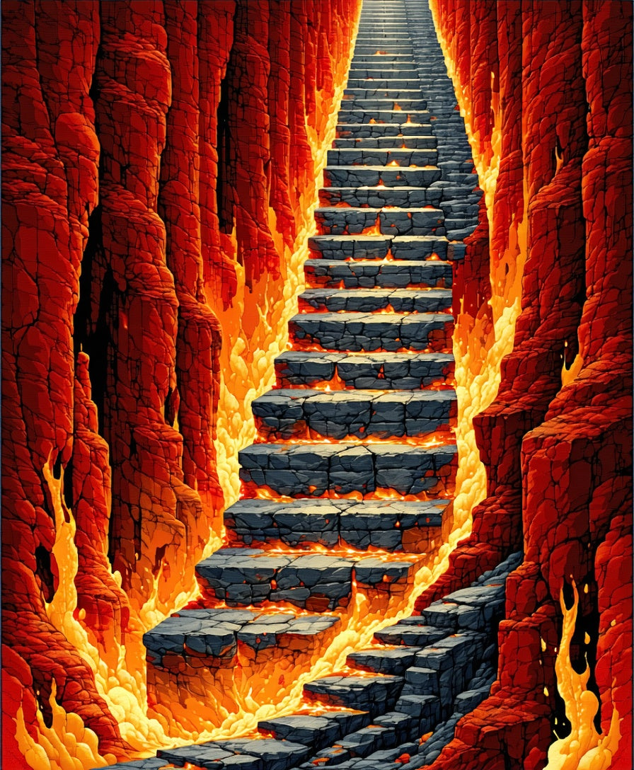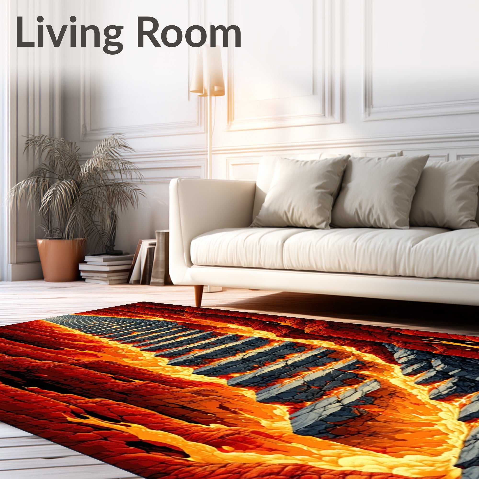 Flatwoven High Traffic Area Rug, Inferno Ladder Illusion Molten Rock Gateway, Non Slip, Stain Resistant, Washable Area Rugs for Living Room, Bedroom (Red) Overview: