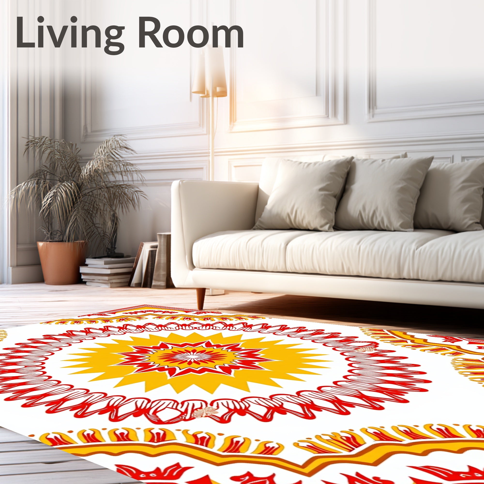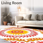 Ultra Soft Area Rug, Non Slip, Stain Resistant, Washable Area Rugs for Living Room, Bedroom, Inspired Design with Symmetrical Petals and Radiant Center(Red) Overview: