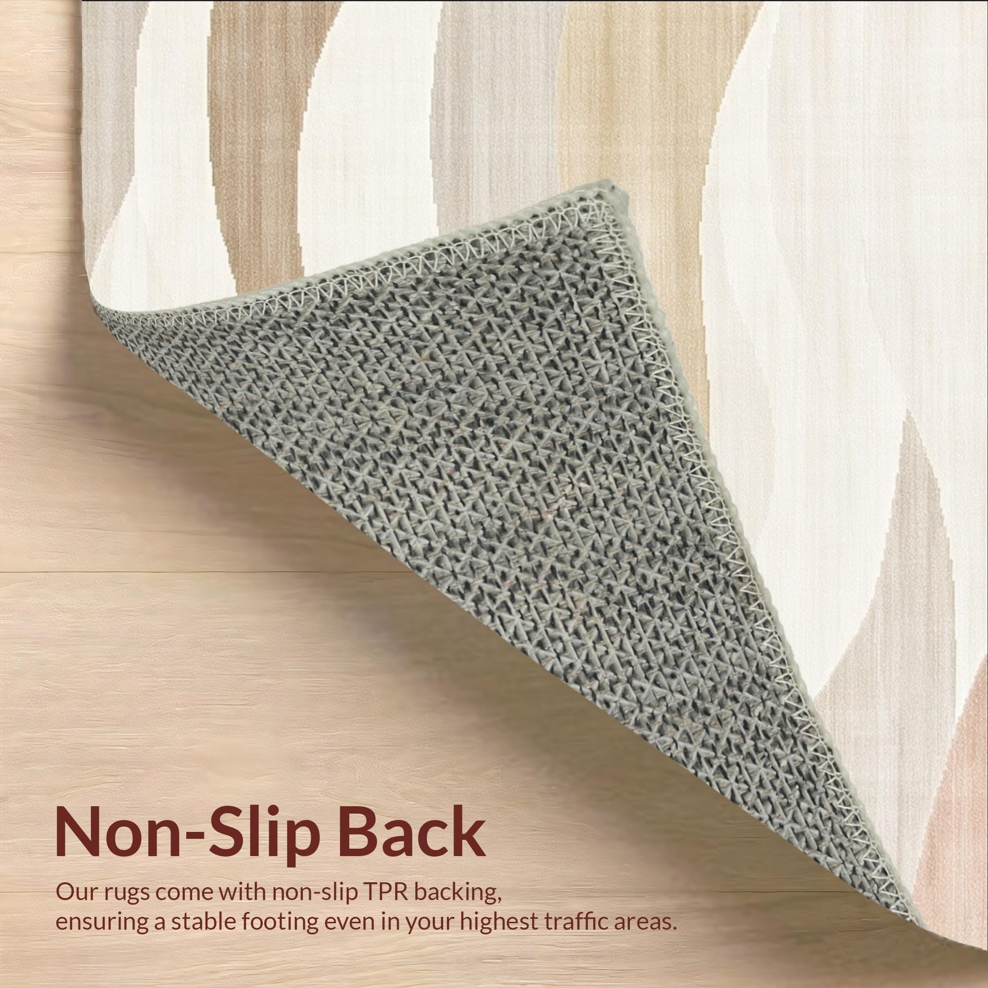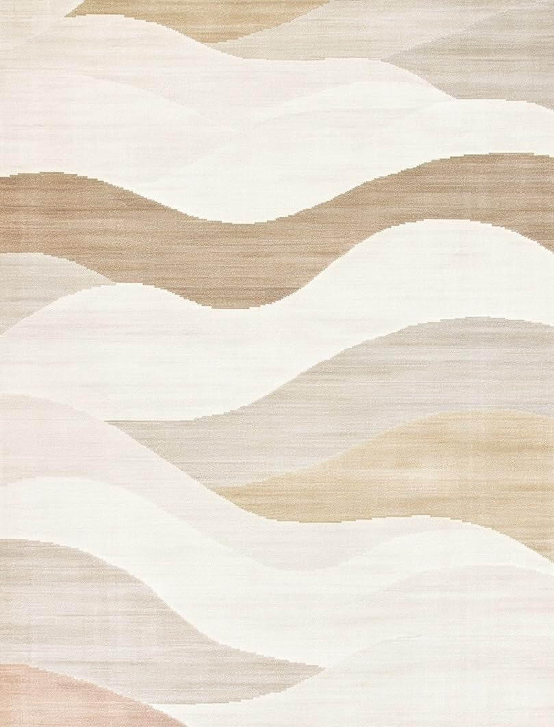 Ultra Soft Area Rug, Non Slip, Stain Resistant, Washable Area Rugs for Living Room, Bedroom, Inspired Geometric Wave Print Premium Neutral Area(Beige) Overview: