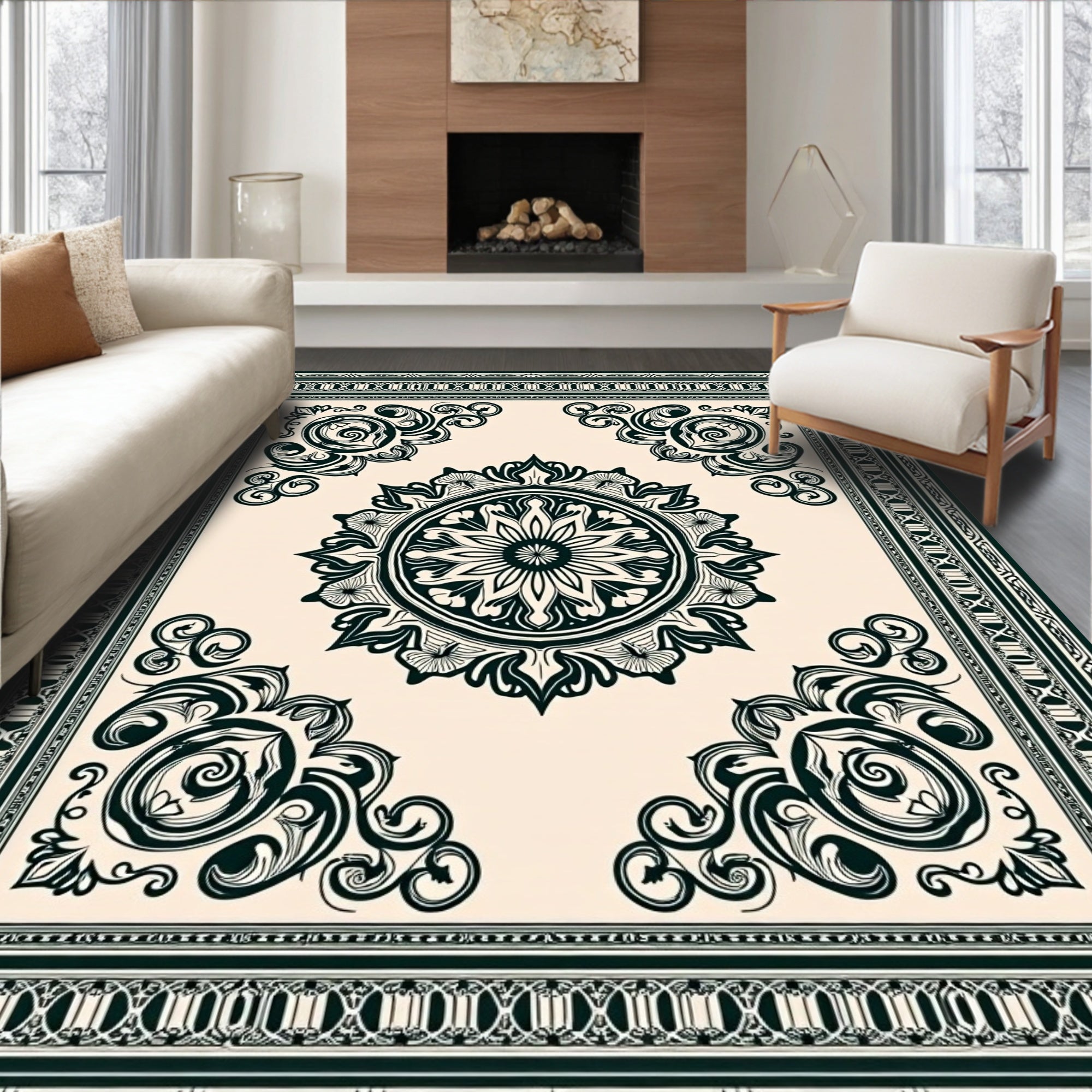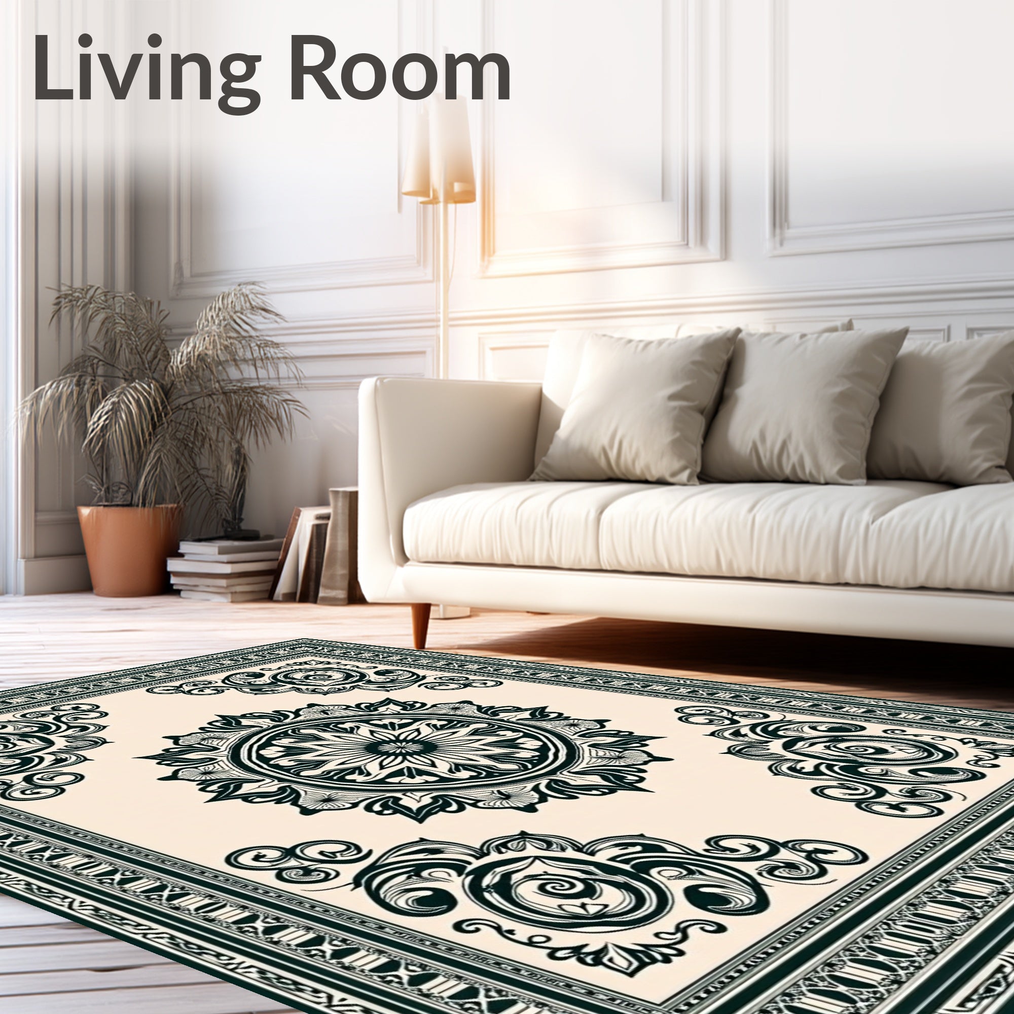 Ultra Soft Area Rug, Non Slip, Stain Resistant, Washable Area Rugs for Living Room, Bedroom, Inspired Quatrefoil Medallion Ornate(Beige) Overview: