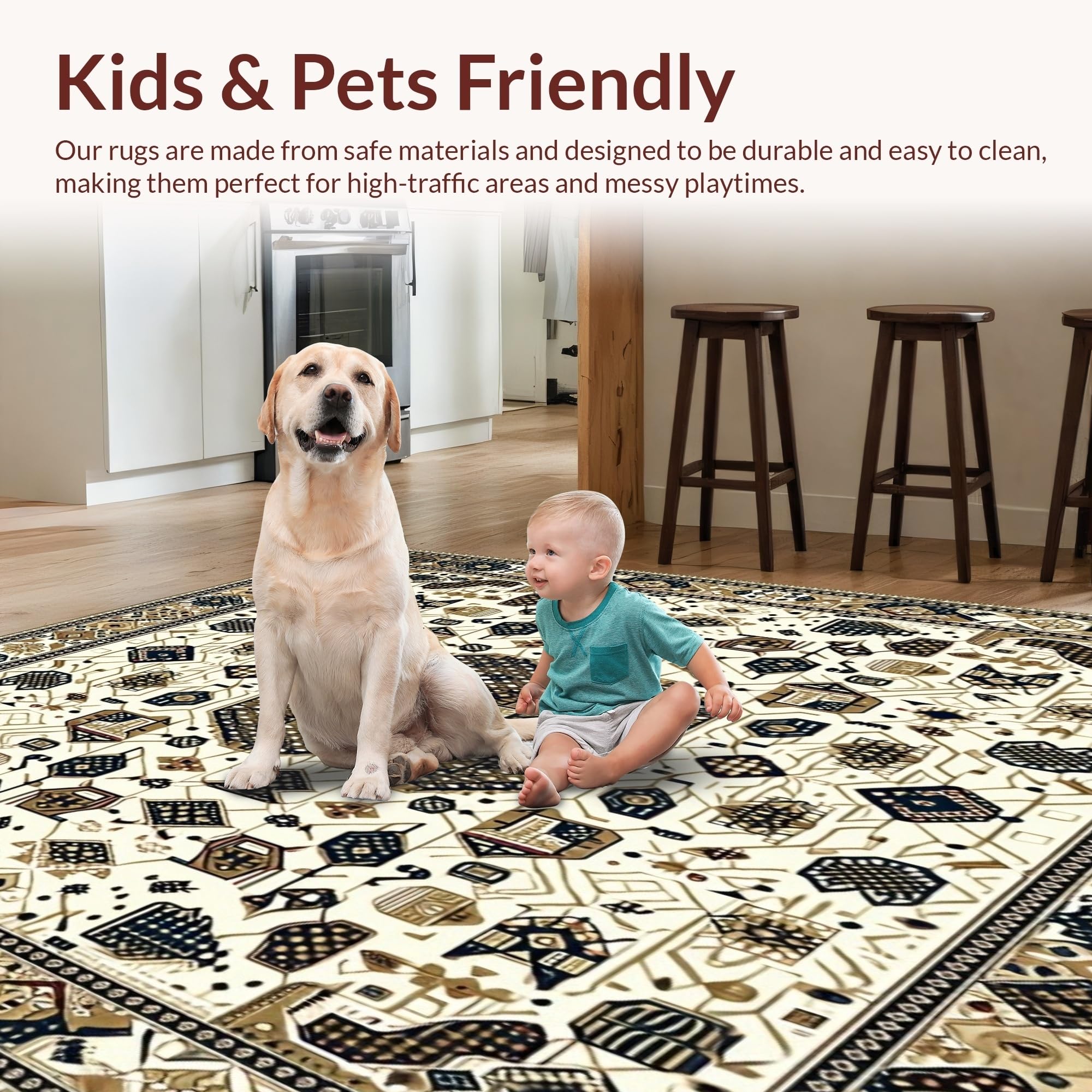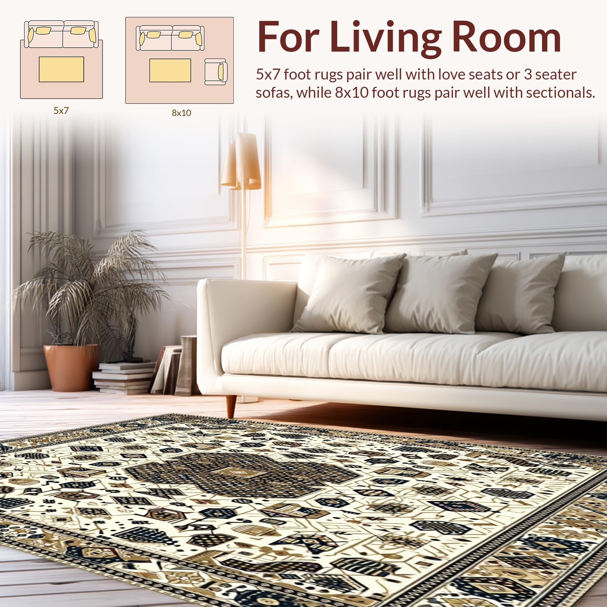 Ultra Soft Area Rug, Non Slip, Stain Resistant, Washable Area Rugs for Living Room, Bedroom, Inspired Shag & Non Shedding Cream Tan Extra Large(Beige) Overview: