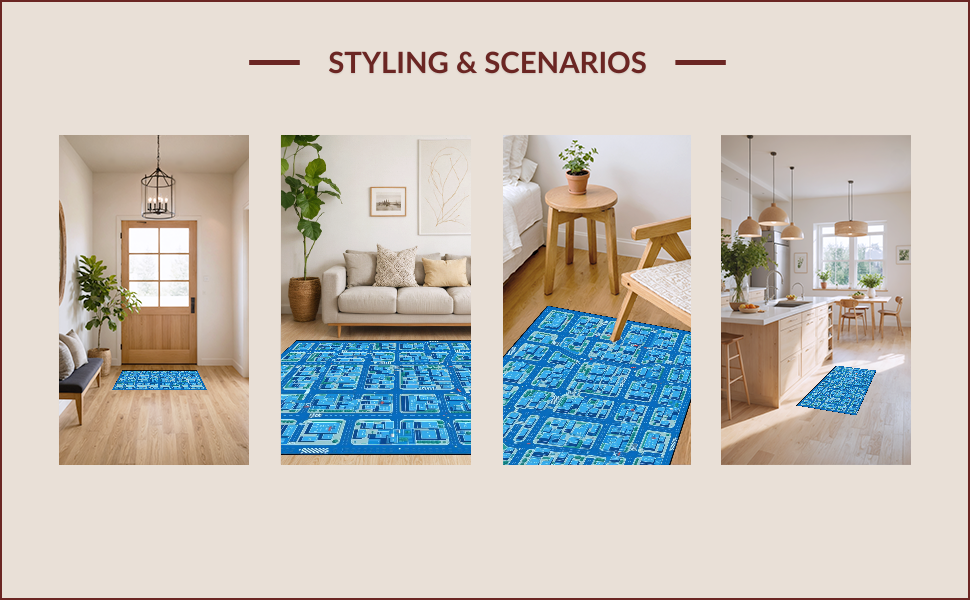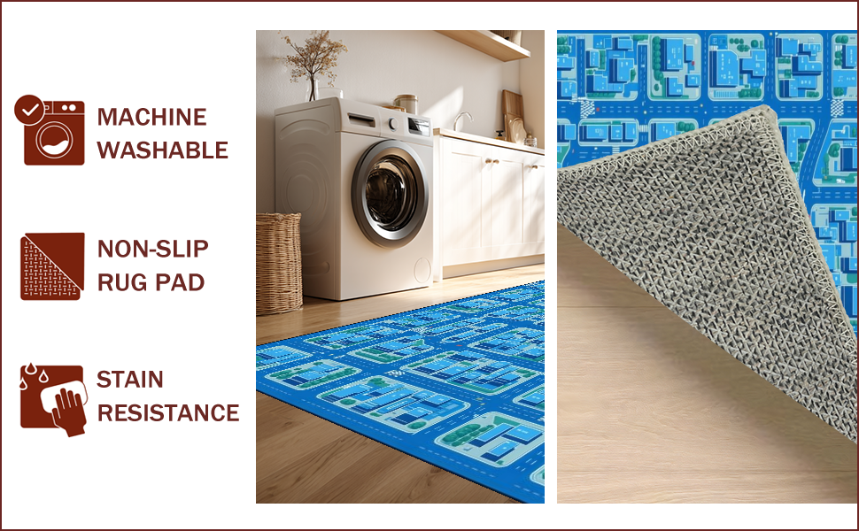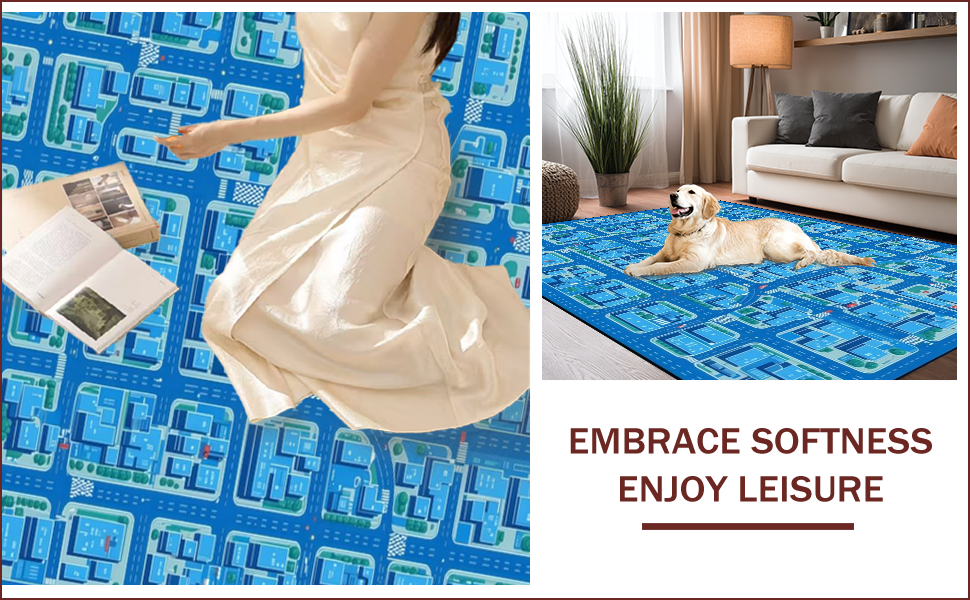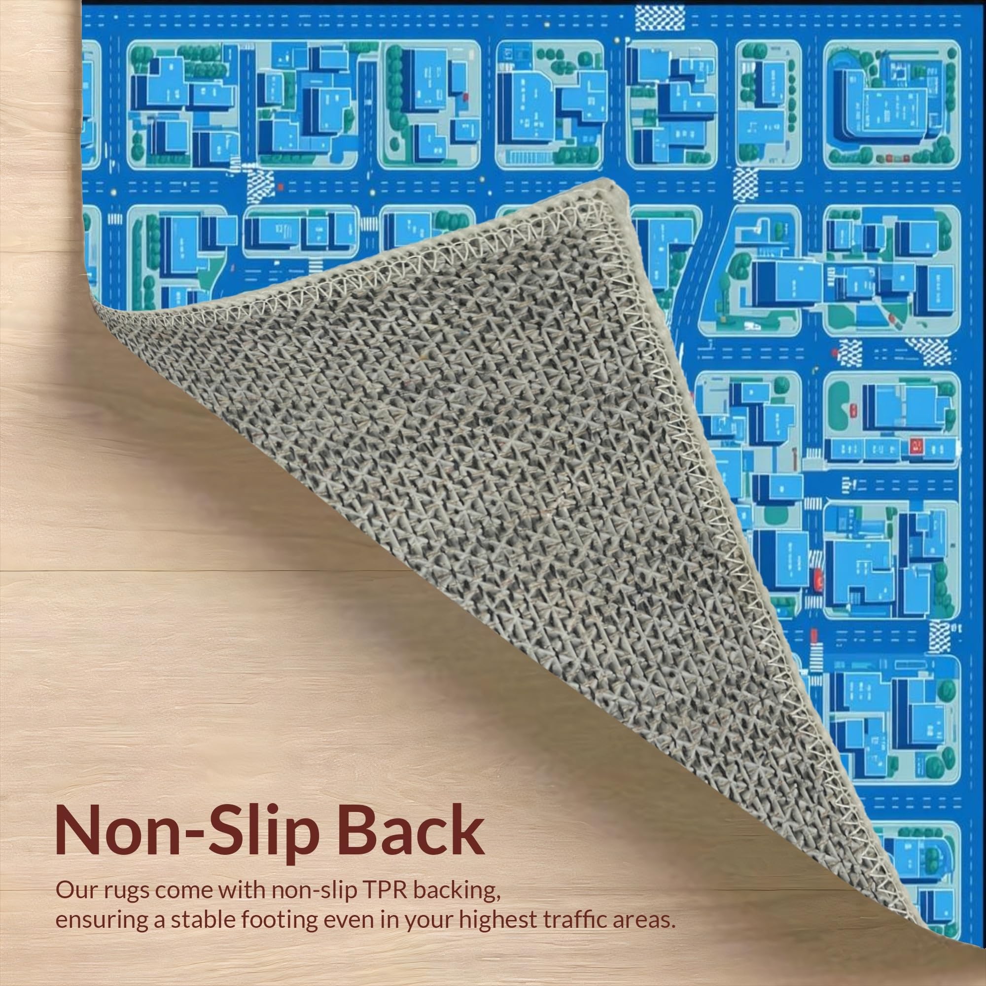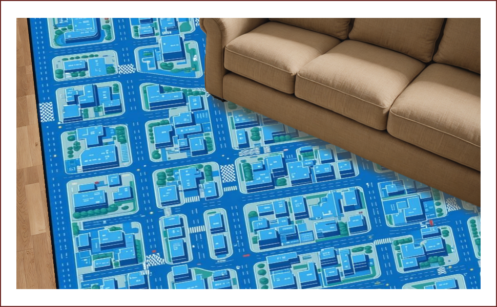 Ultra Soft Area Rug, Non Slip, Stain Resistant, Washable Area Rugs for Living Room, Bedroom, Interactive Cityscape Playful Design(Blue) Overview: