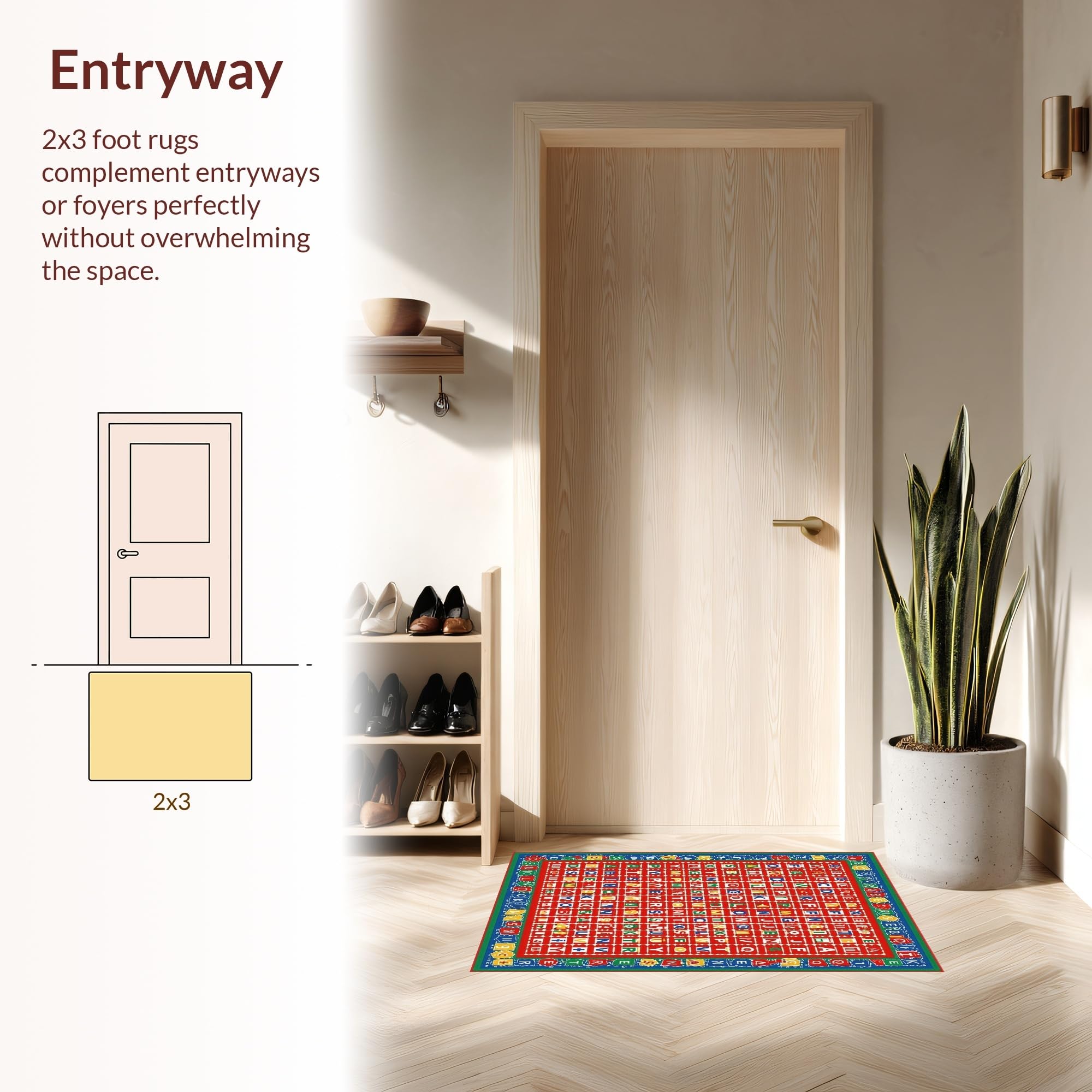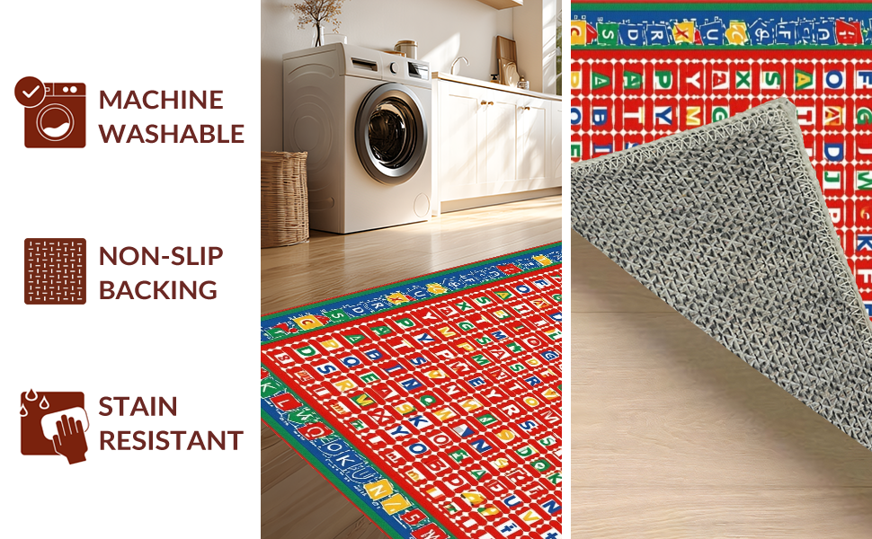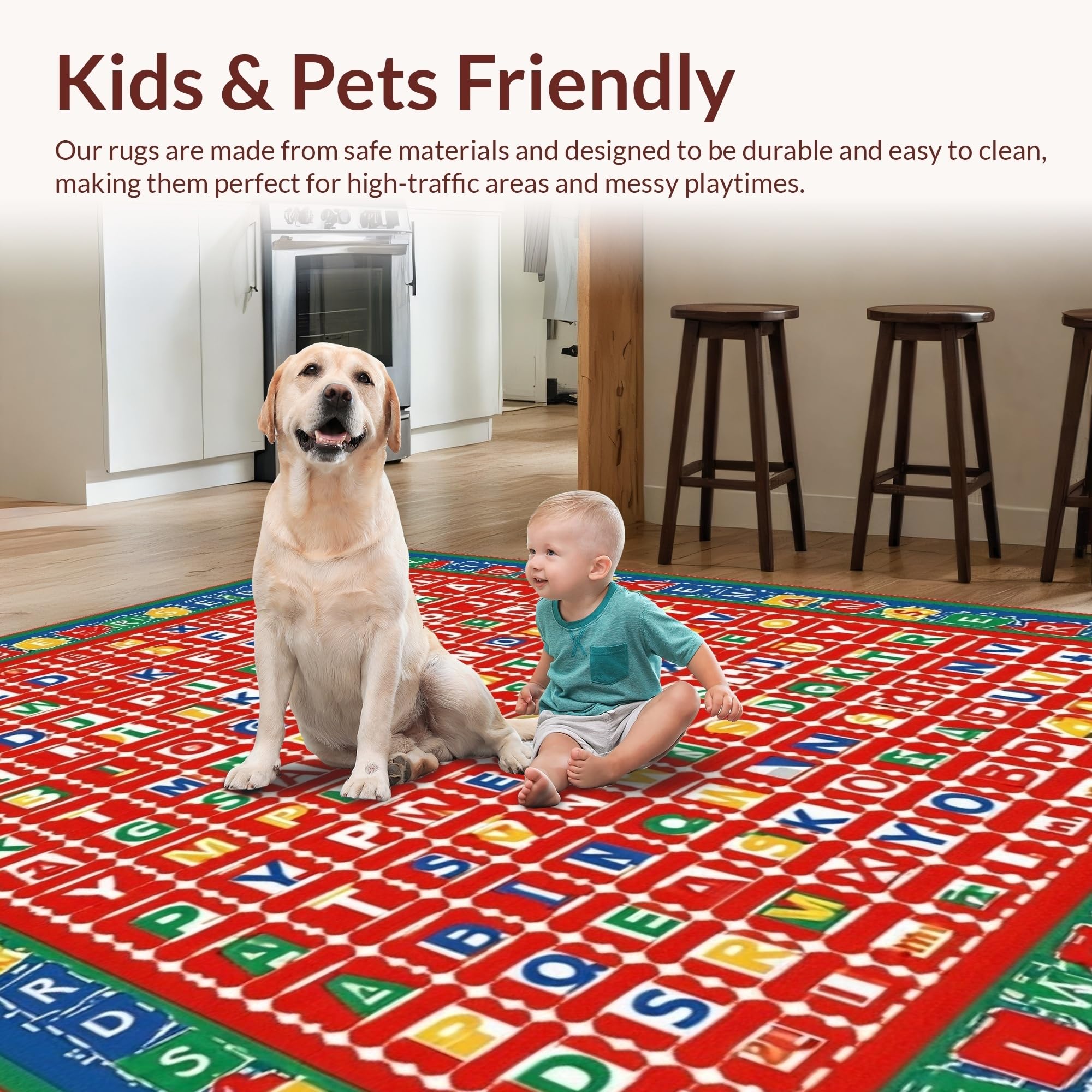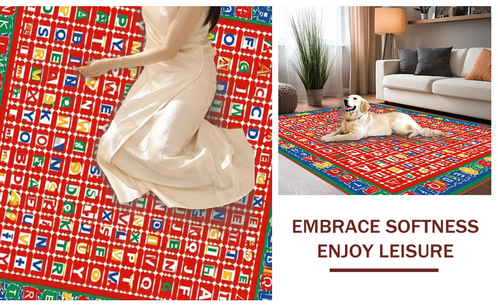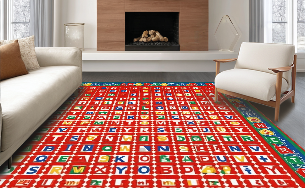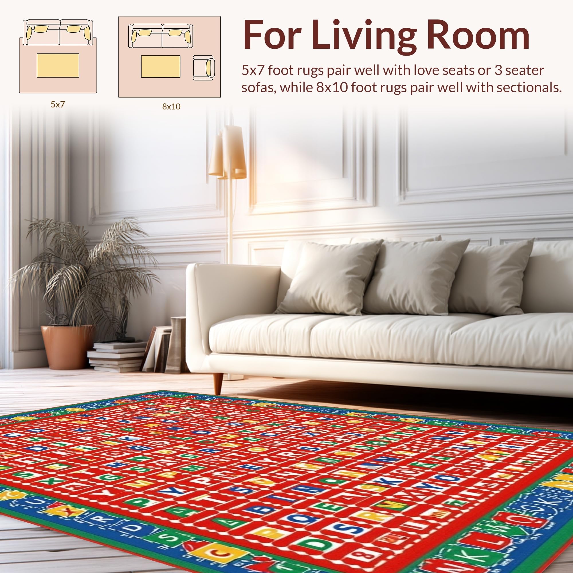 Ultra Soft Area Rug, Non Slip, Stain Resistant, Washable Area Rugs for Living Room, Bedroom, Interactive Color Burst Educational Rug(Red) Overview: