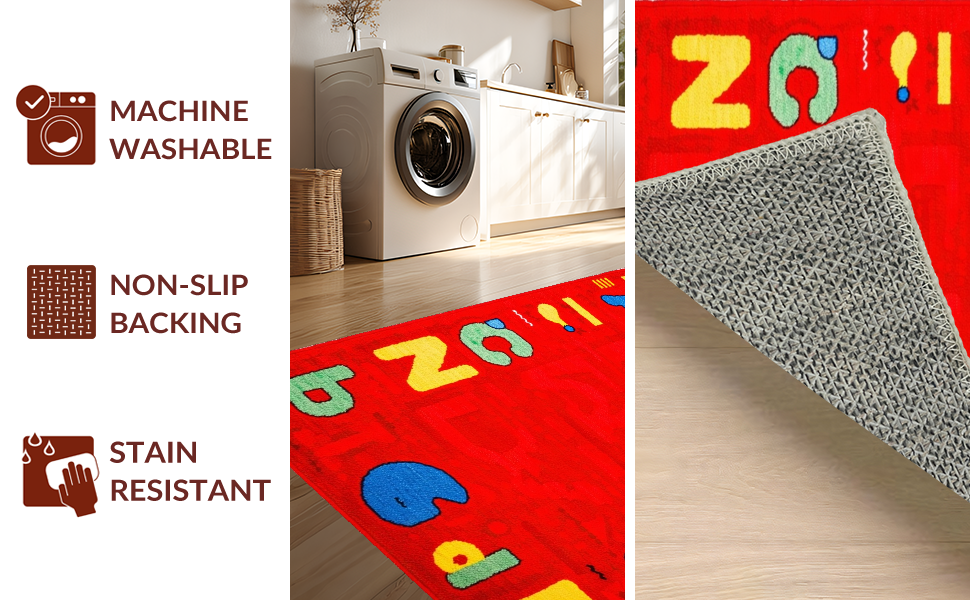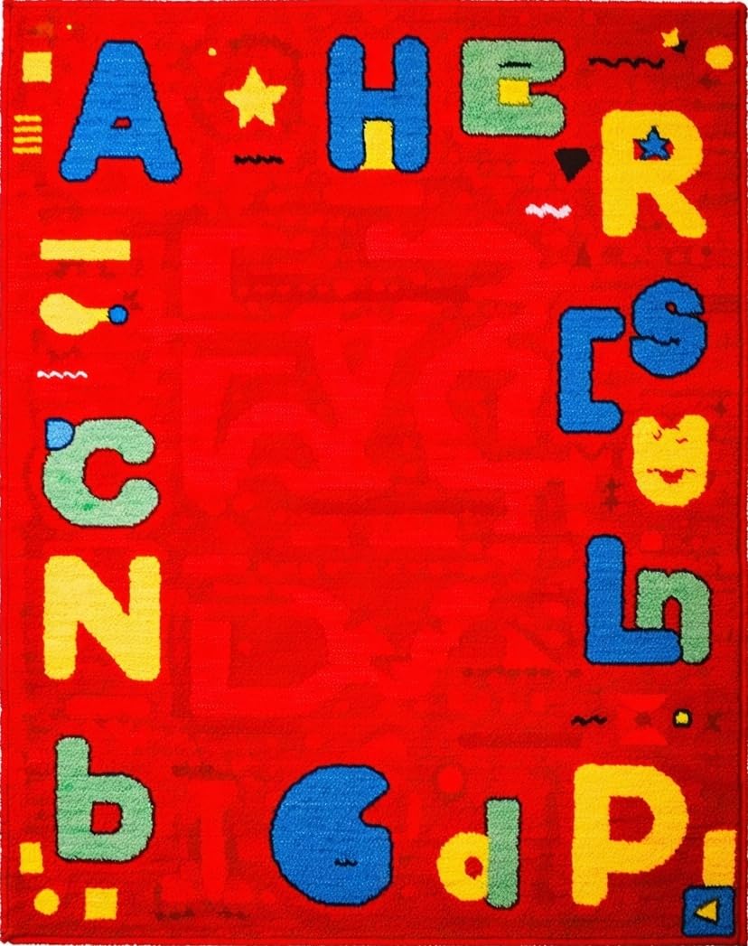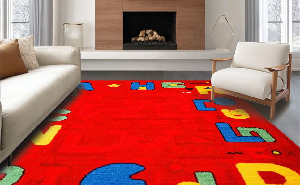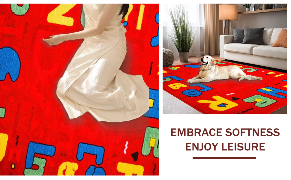 Ultra Soft Area Rug, Non Slip, Stain Resistant, Washable Area Rugs for Living Room, Bedroom, Interactive Colorful Learning Landscape(Red) Overview: