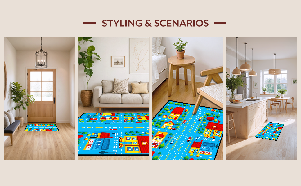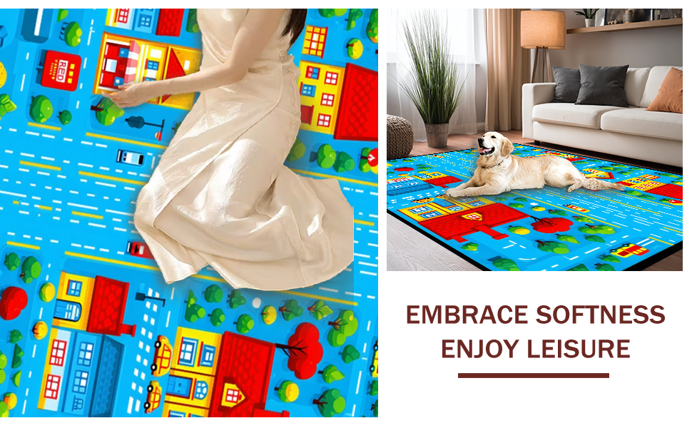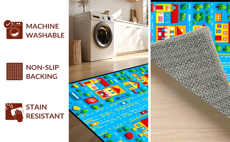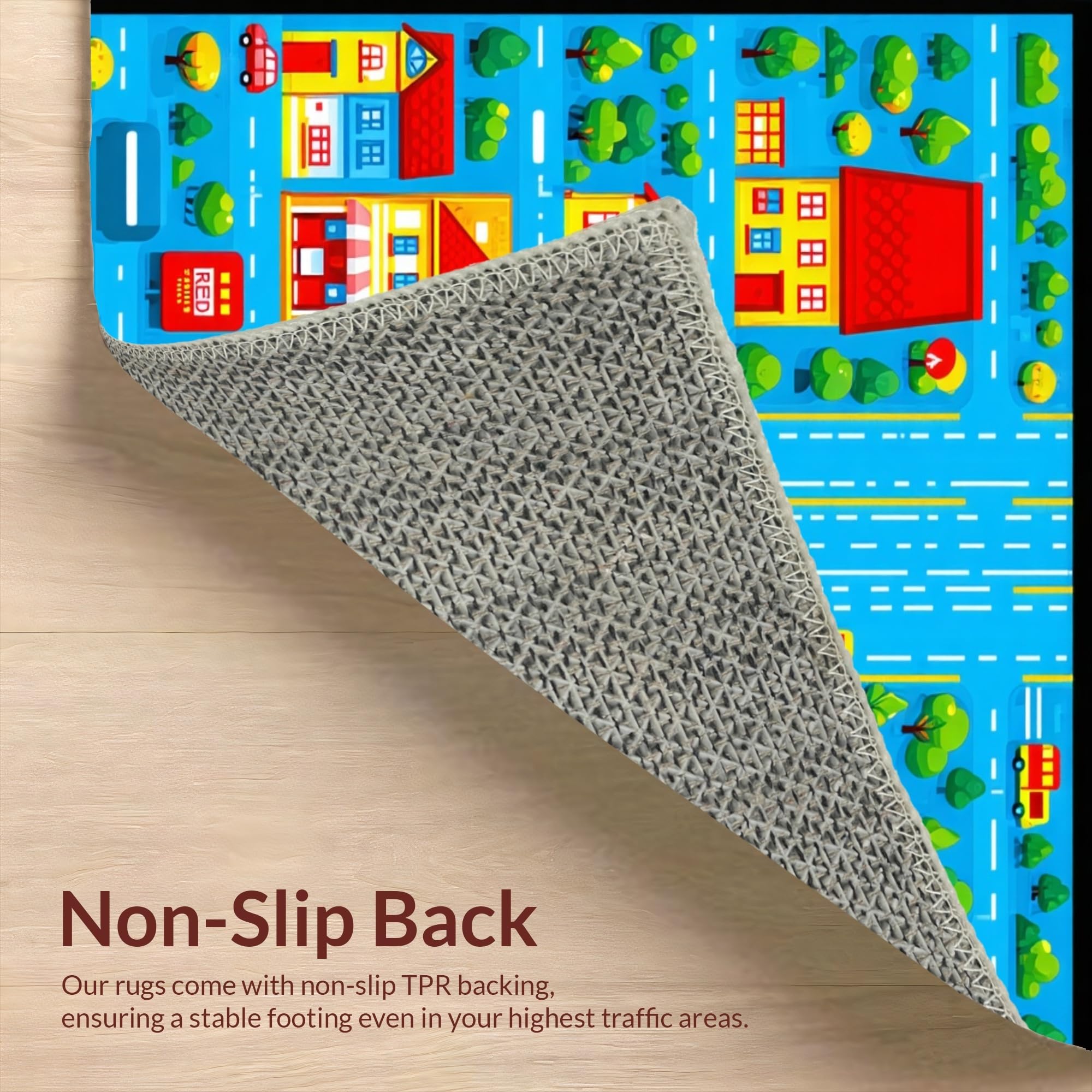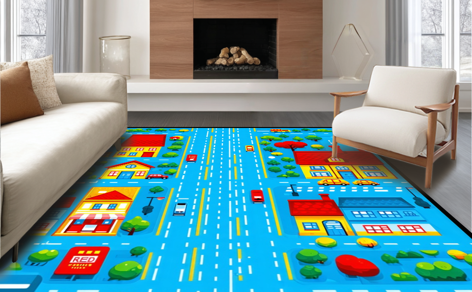 Ultra Soft Area Rug, Non Slip, Stain Resistant, Washable Area Rugs for Living Room, Bedroom, Interactive Educational Urban Layout(Blue) Overview: