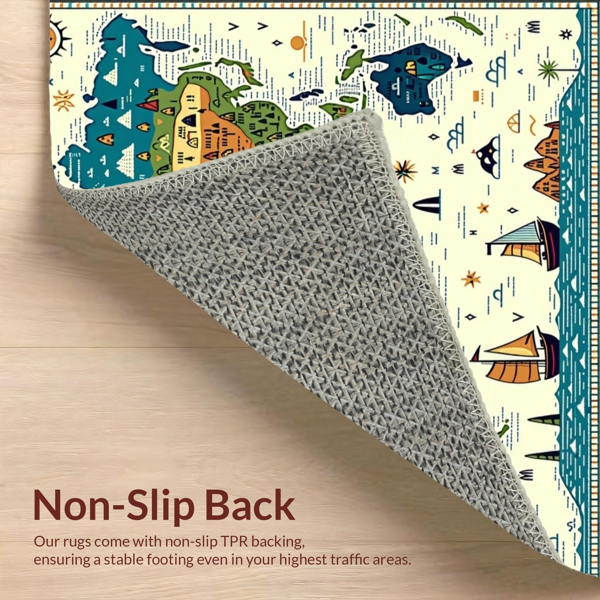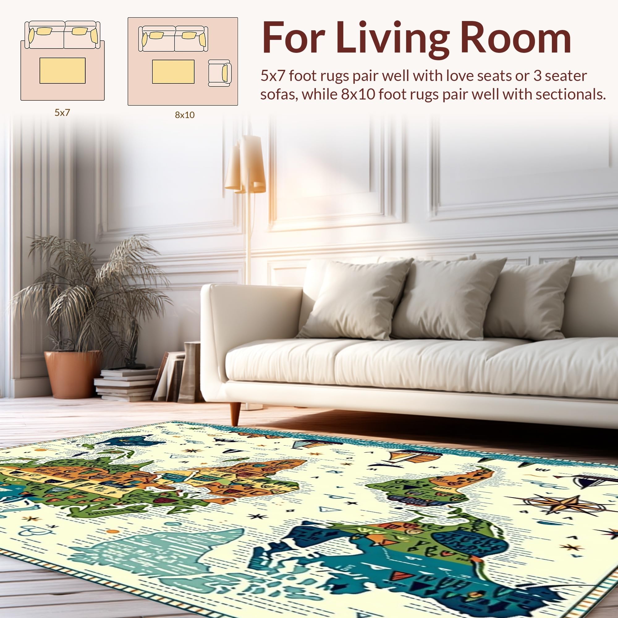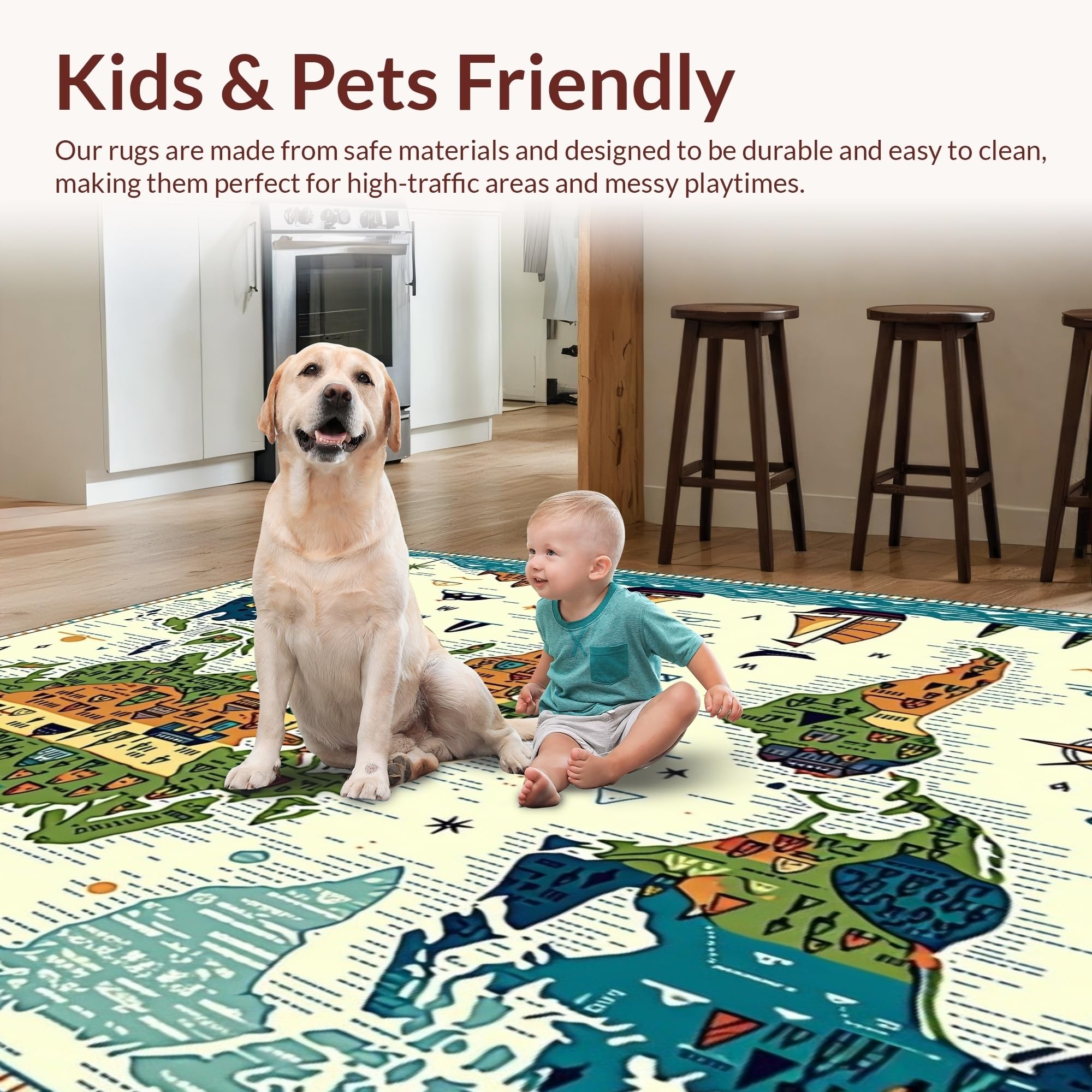 Ultra Soft Area Rug, Non Slip, Stain Resistant, Washable Area Rugs for Living Room, Bedroom, Interactive Global Explorer Play Circle with Continents for Classroom(Green) Overview: