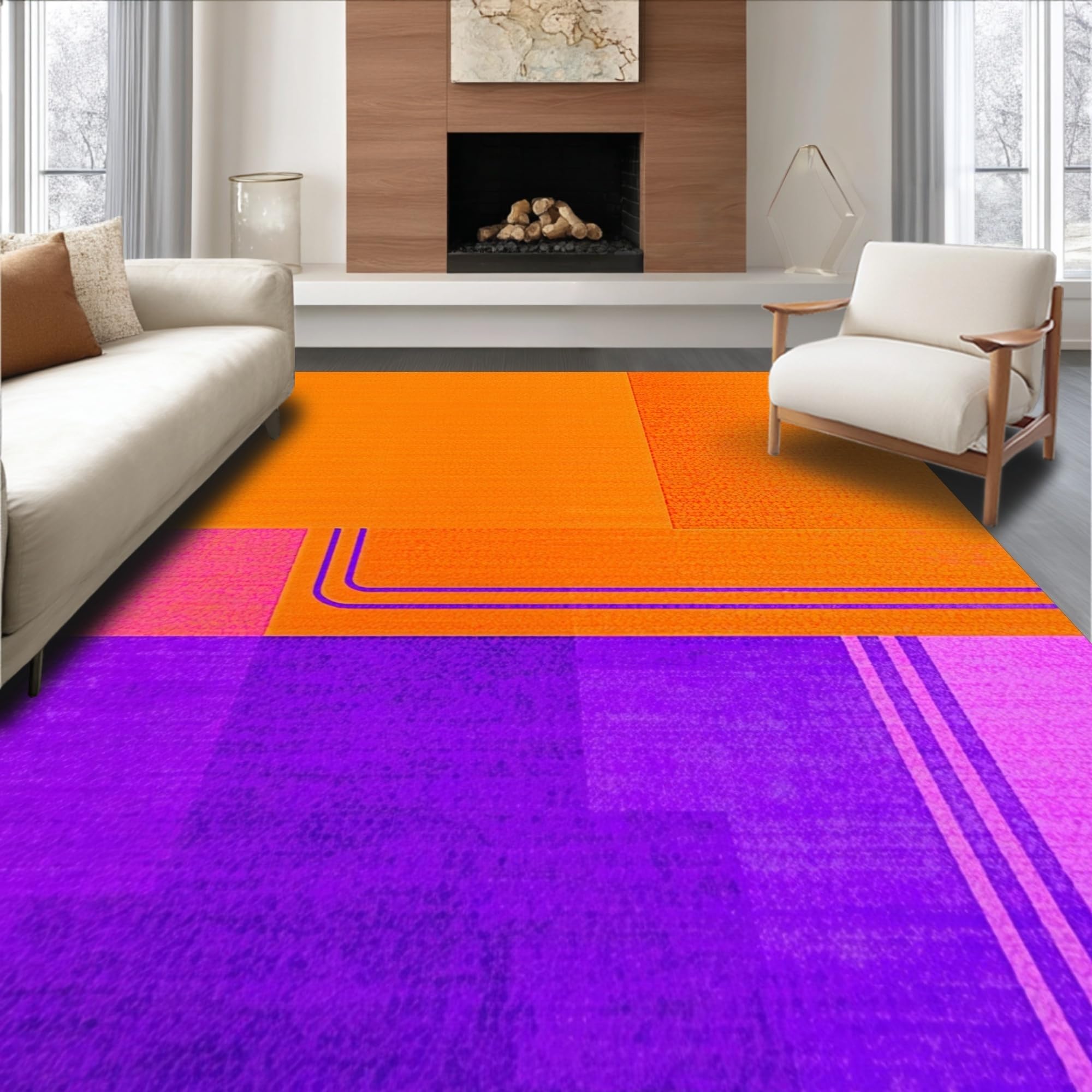 Ultra Soft Area Rug, Non Slip, Stain Resistant, Washable Area Rugs for Living Room, Bedroom, Interactive Playful Liquid Aesthetic(Orange) Overview: