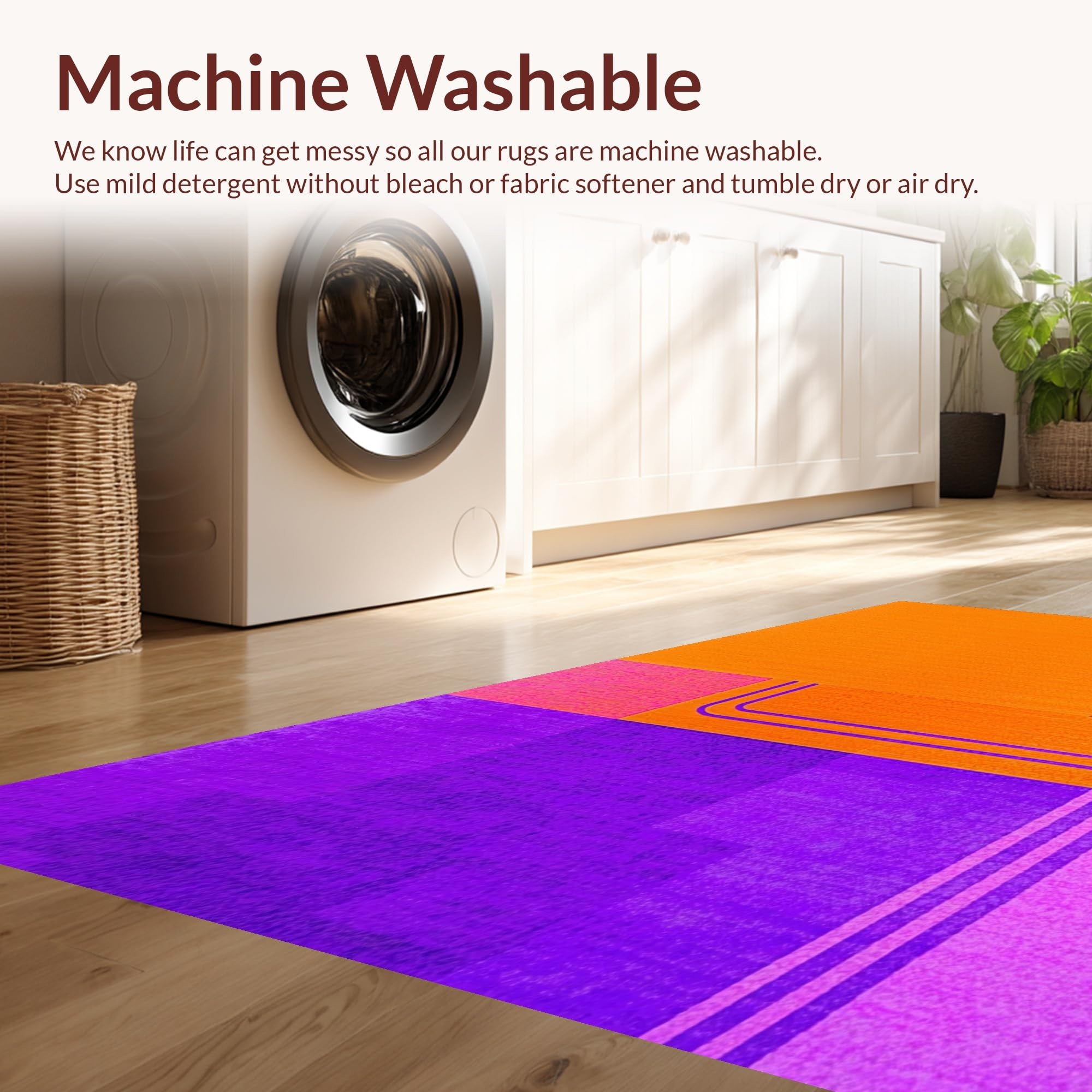 - Machine Washable: Our rugs can be easily thrown in the wash machine.