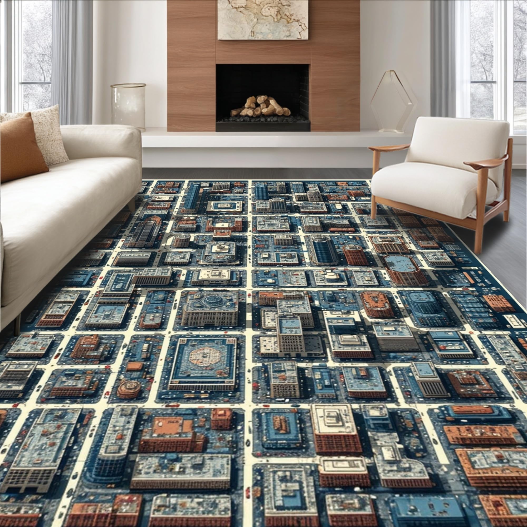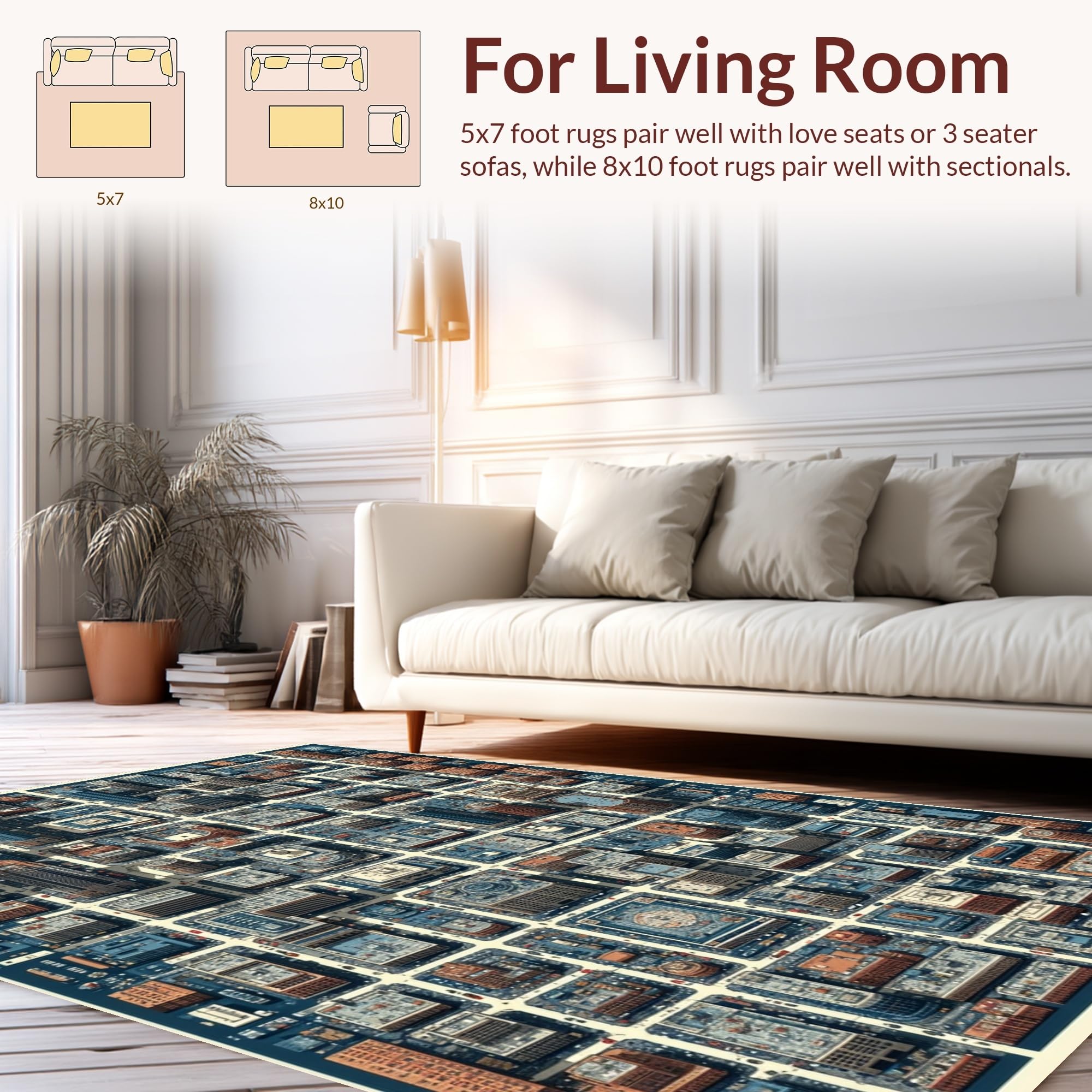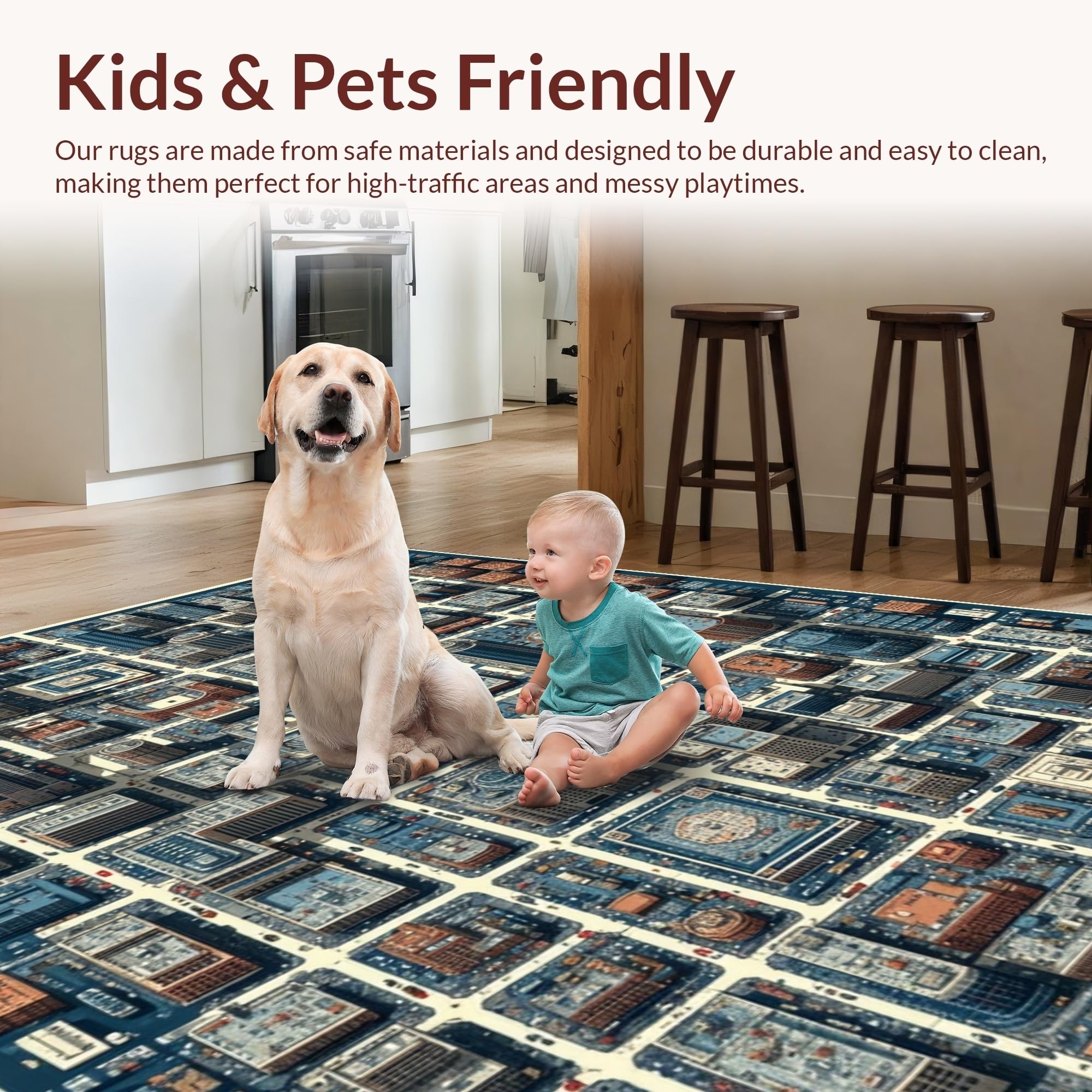 Ultra Soft Area Rug, Non Slip, Stain Resistant, Washable Area Rugs for Living Room, Bedroom, Interactive Road Design Carpet for Kids Learning Area(Blue) Overview: