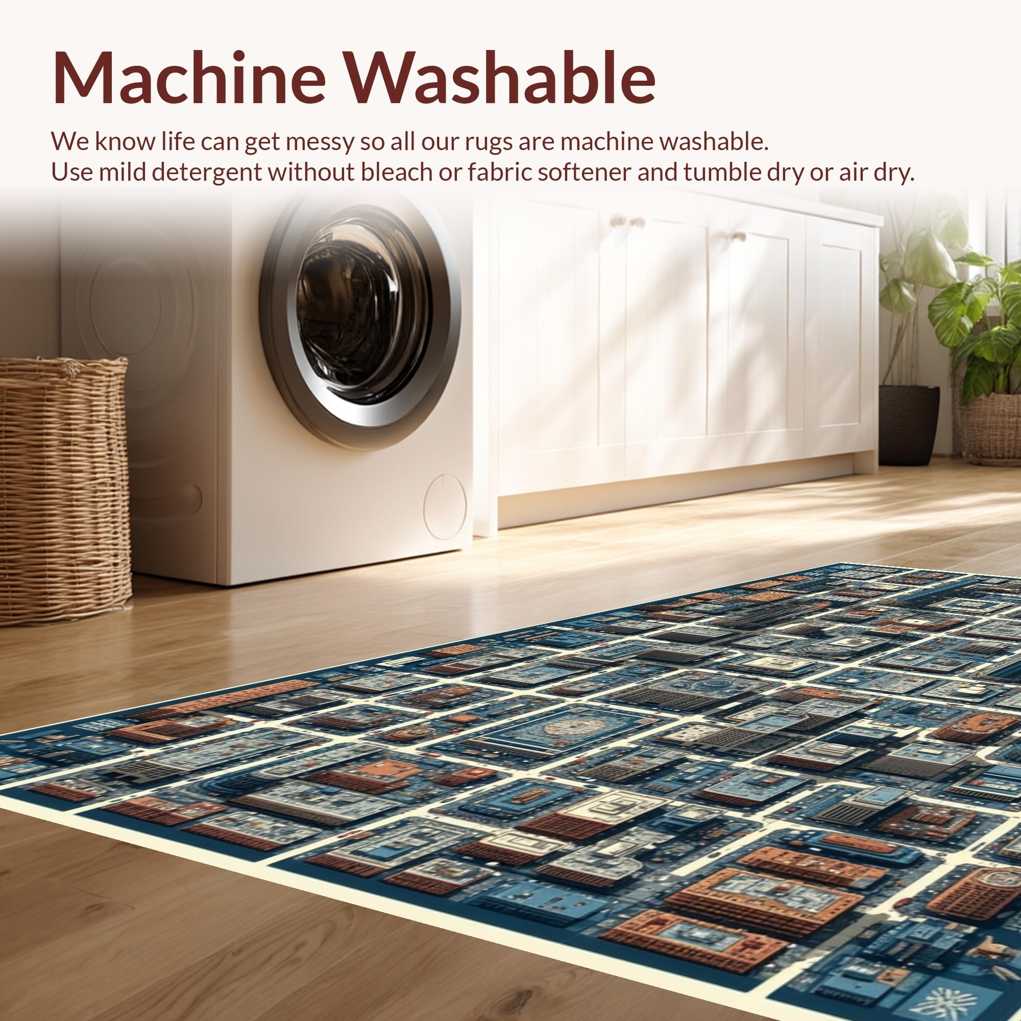- Machine Washable: Our rugs can be easily thrown in the wash machine.