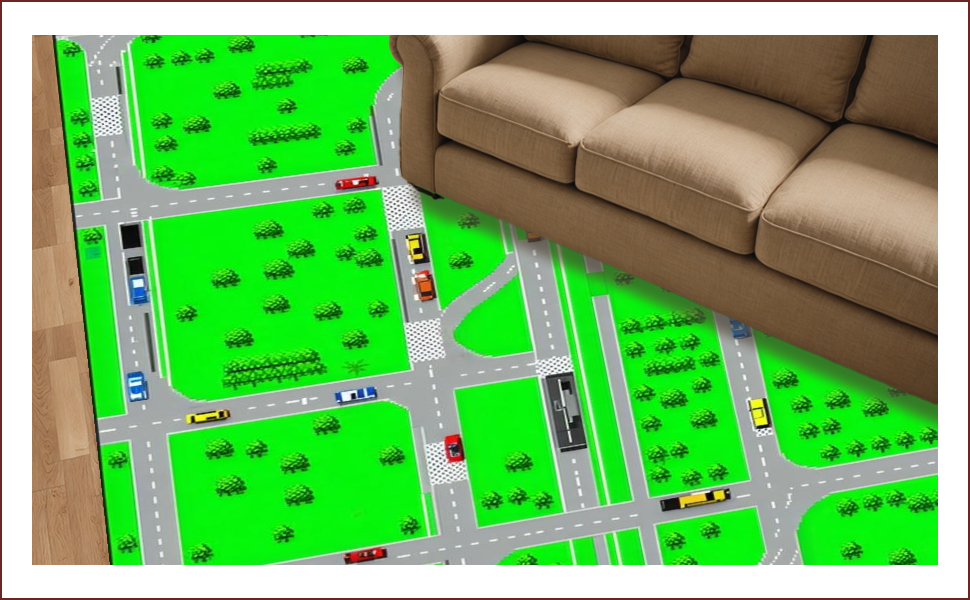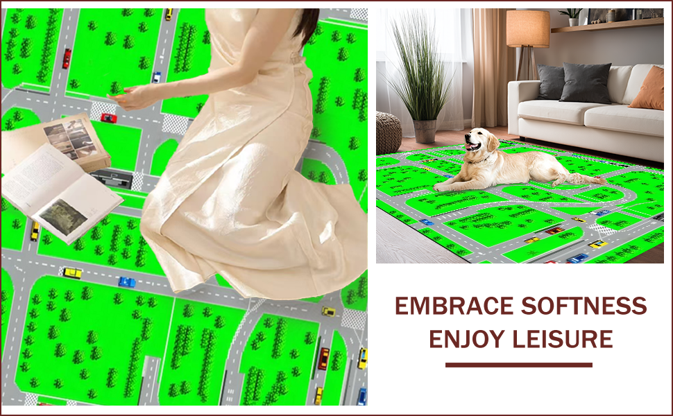 Ultra Soft Area Rug, Non Slip, Stain Resistant, Washable Area Rugs for Living Room, Bedroom, Interactive Roadway Adventure Theme(Green) Overview: