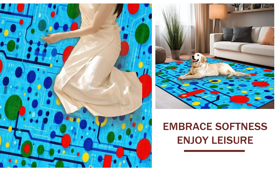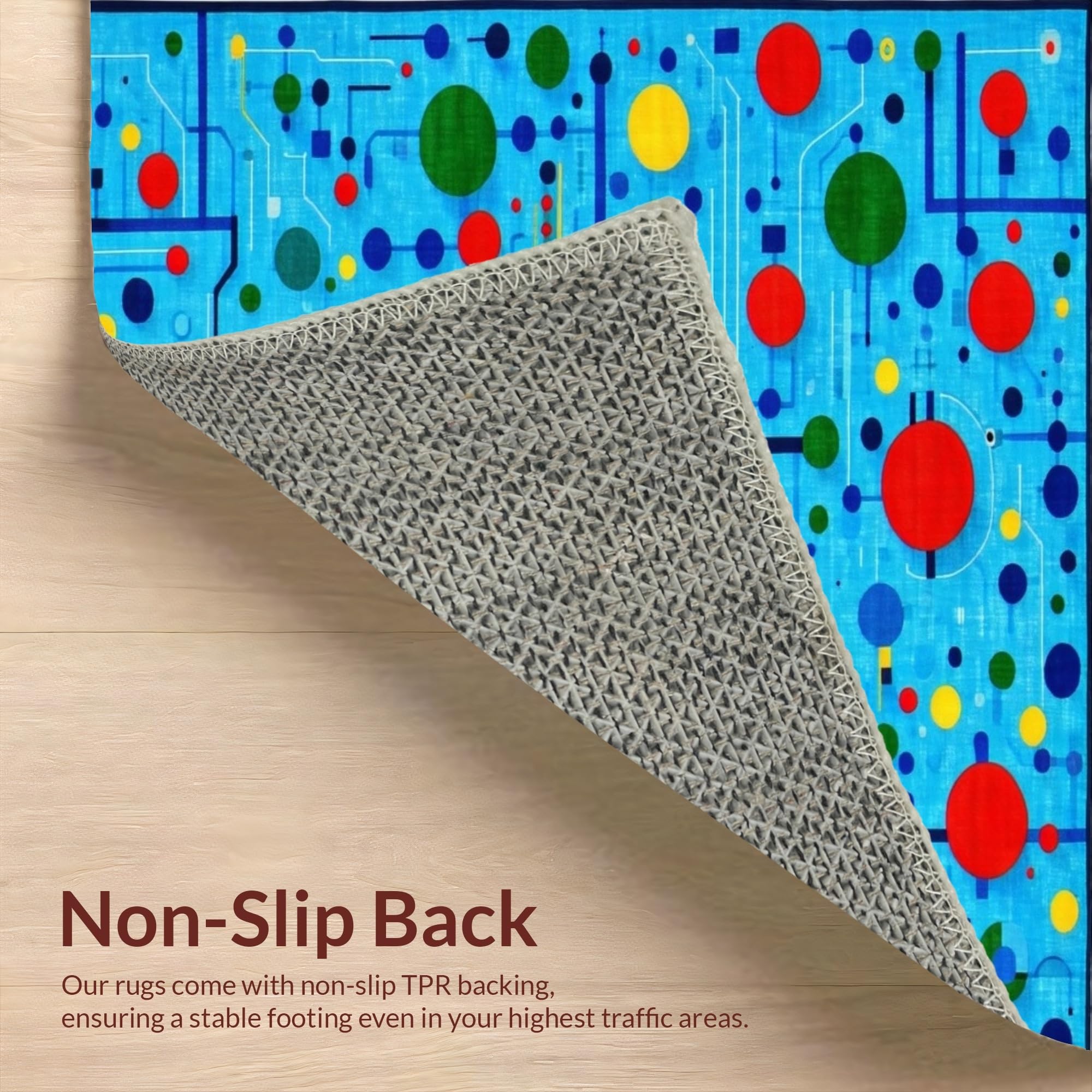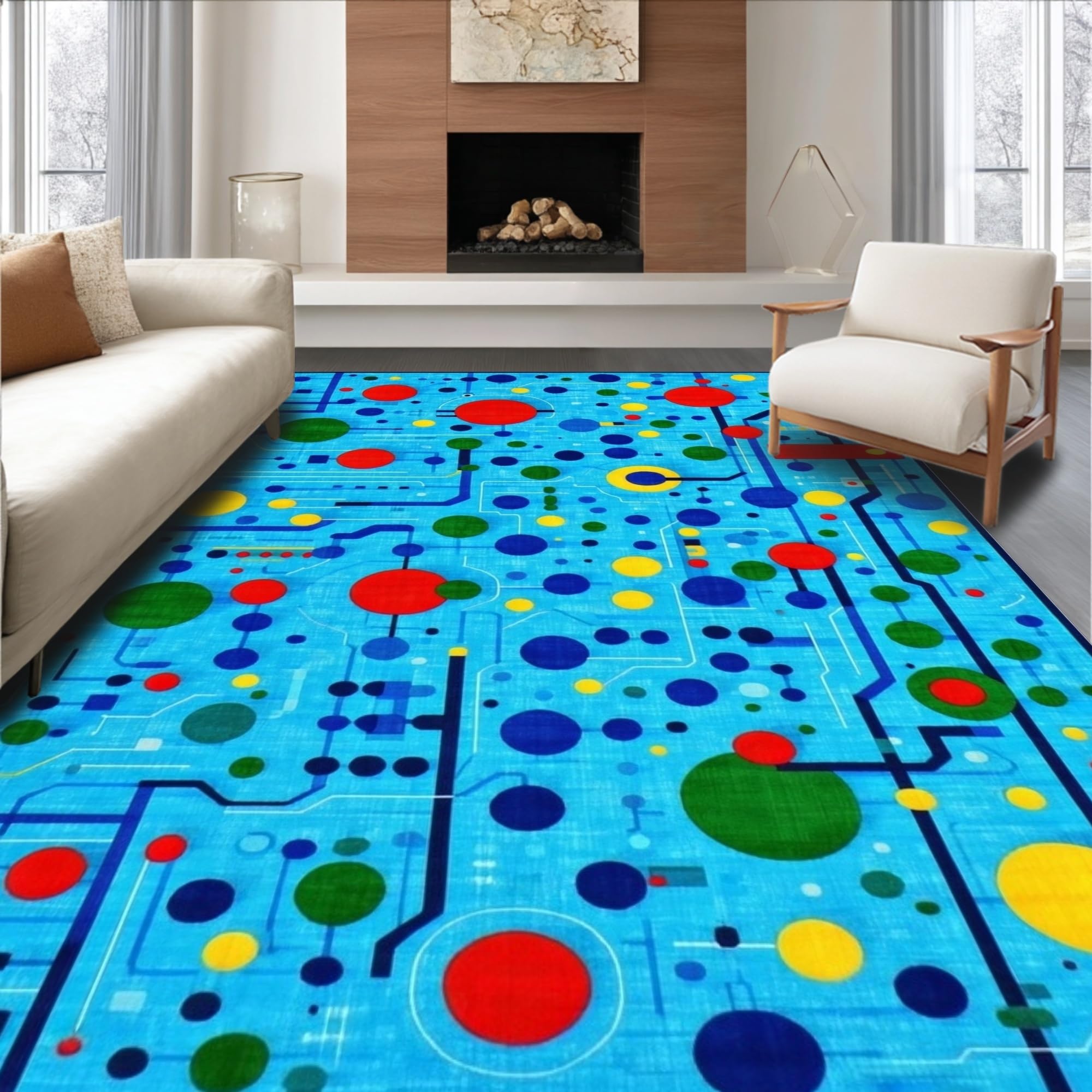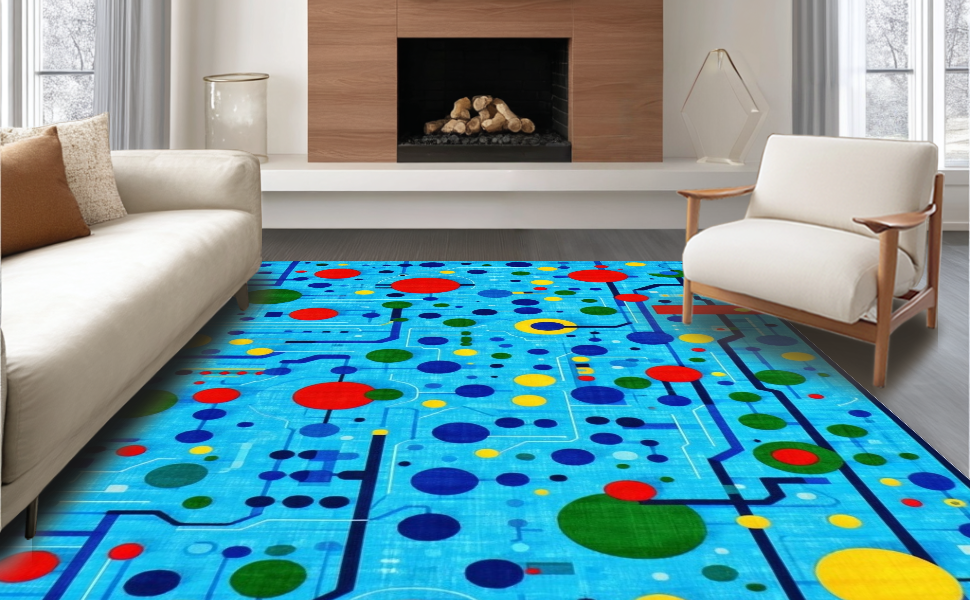 Ultra Soft Area Rug, Non Slip, Stain Resistant, Washable Area Rugs for Living Room, Bedroom, Interactive Round Patterned Accent(Blue) Overview: