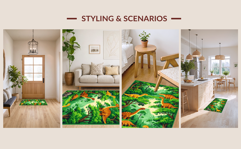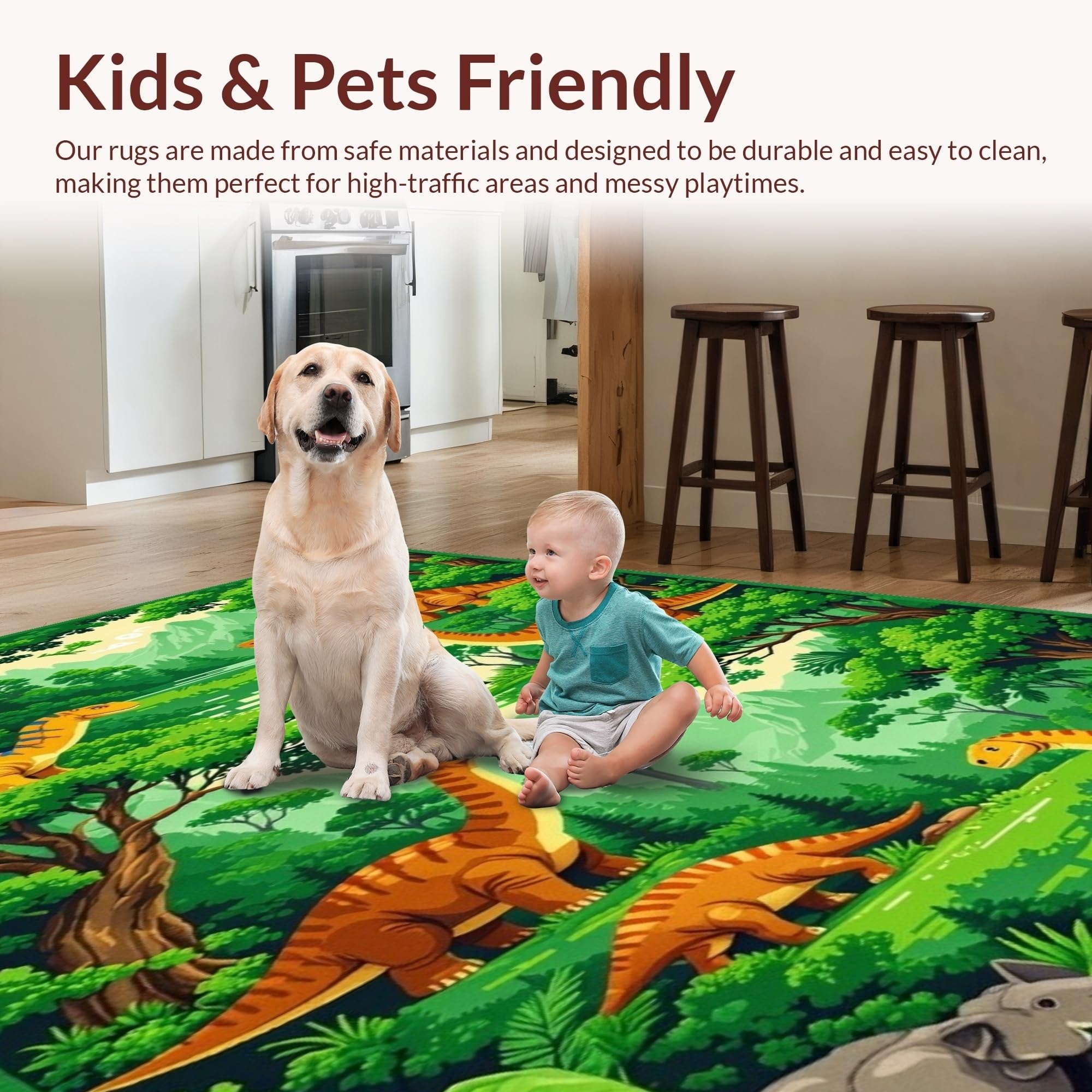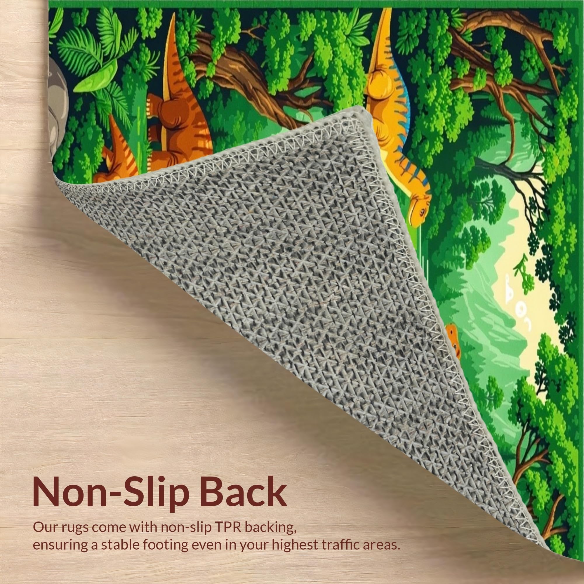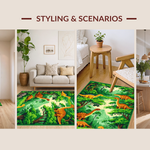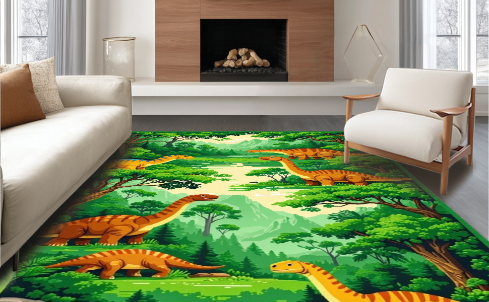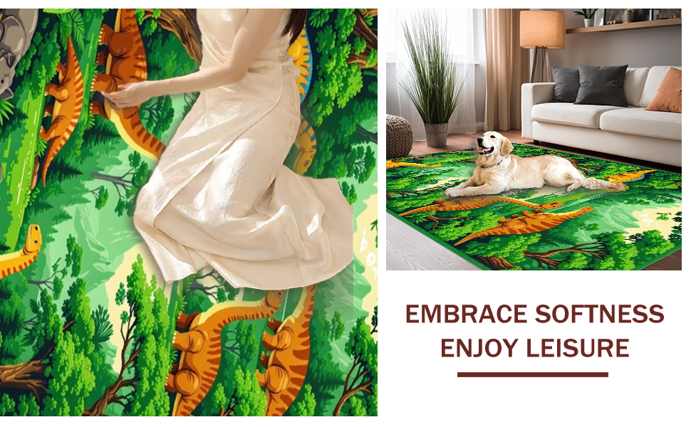 Ultra Soft Area Rug, Non Slip, Stain Resistant, Washable Area Rugs for Living Room, Bedroom, Interactive T-Rex Terrain Visual(Green) Overview: