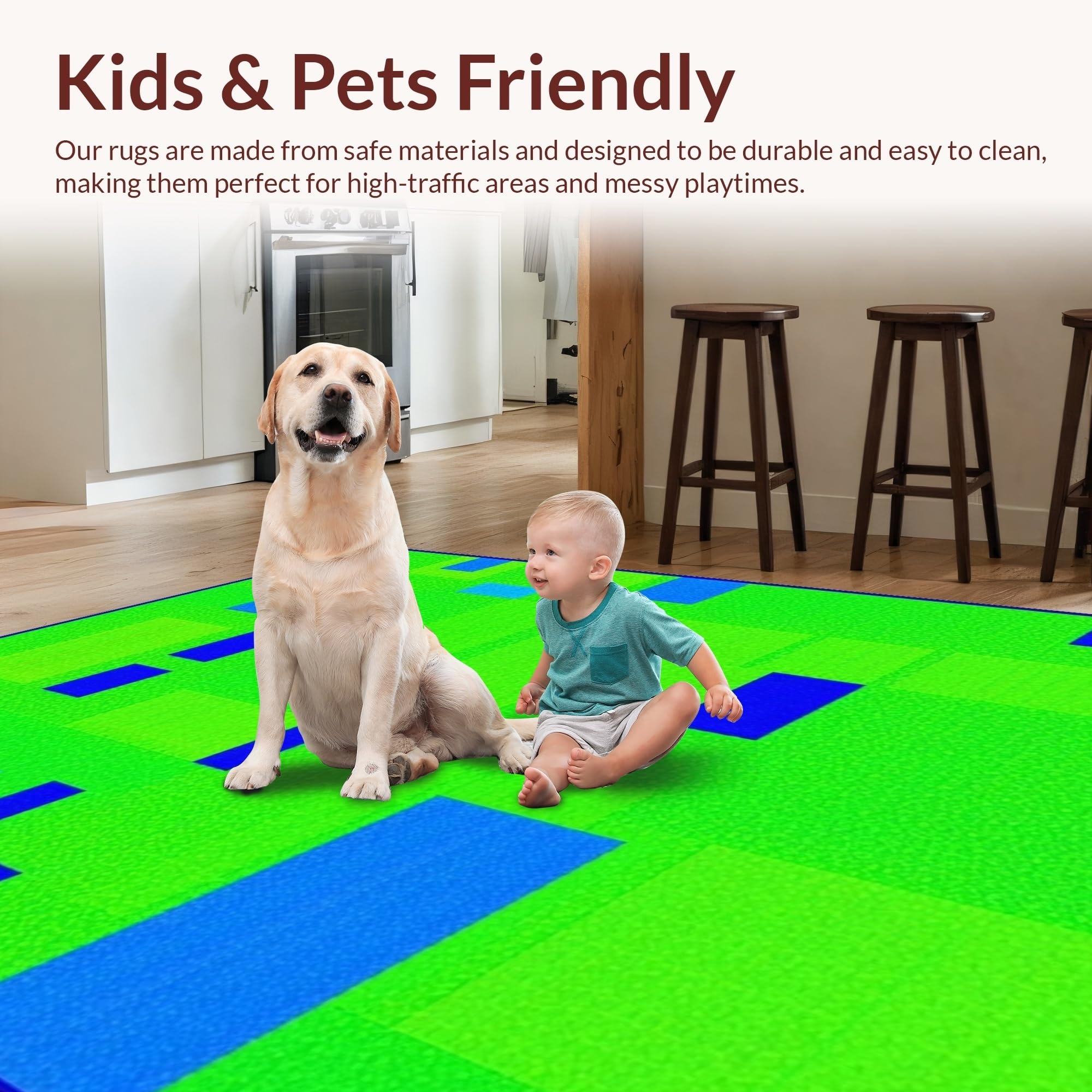 Ultra Soft Area Rug, Non Slip, Stain Resistant, Washable Area Rugs for Living Room, Bedroom, Interactive Train Track Design(Green) Overview: