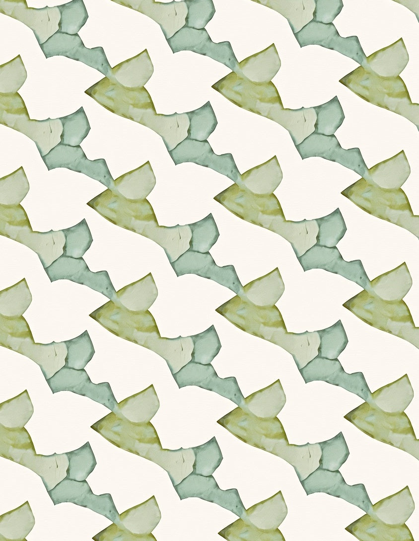 Interlocking Maze Motif with Watercolor Fade Accents(Beige)