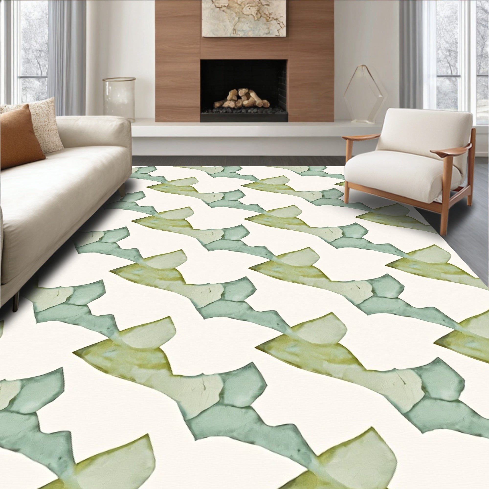 Ultra Soft Area Rug, Non Slip, Stain Resistant, Washable Area Rugs for Living Room, Bedroom, Interlocking Maze Motif with Watercolor Fade Accents(Beige) Overview: