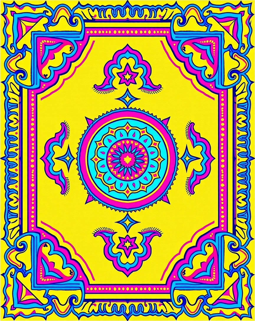 Interlocking Medallion Trellis with Vibrant Motif and Artistic Flourishes(Yellow)