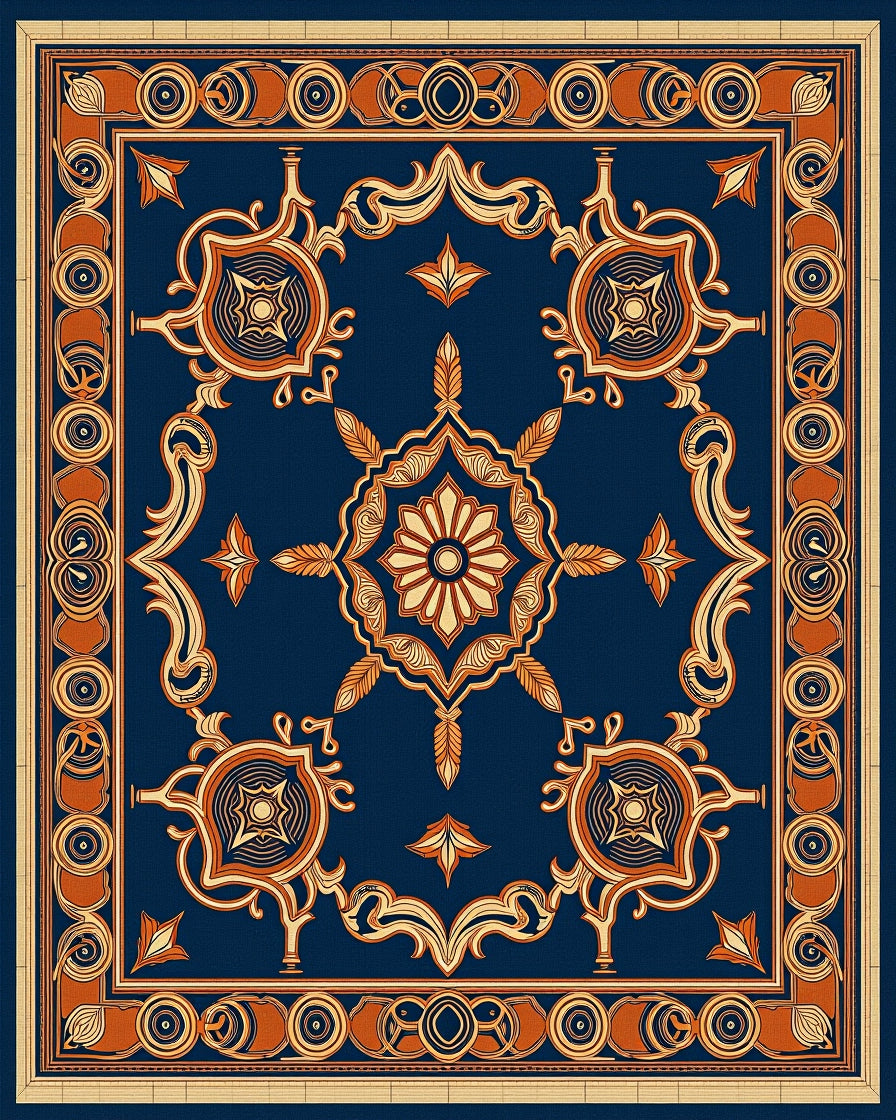 Interlocking Mosaic Medallion Motif with Artistic Gradient Effect(Navy Blue)