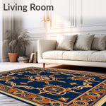 Ultra Soft Area Rug, Non Slip, Stain Resistant, Washable Area Rugs for Living Room, Bedroom, Interlocking Mosaic Medallion Motif with Artistic Gradient Effect(Navy Blue) Overview: