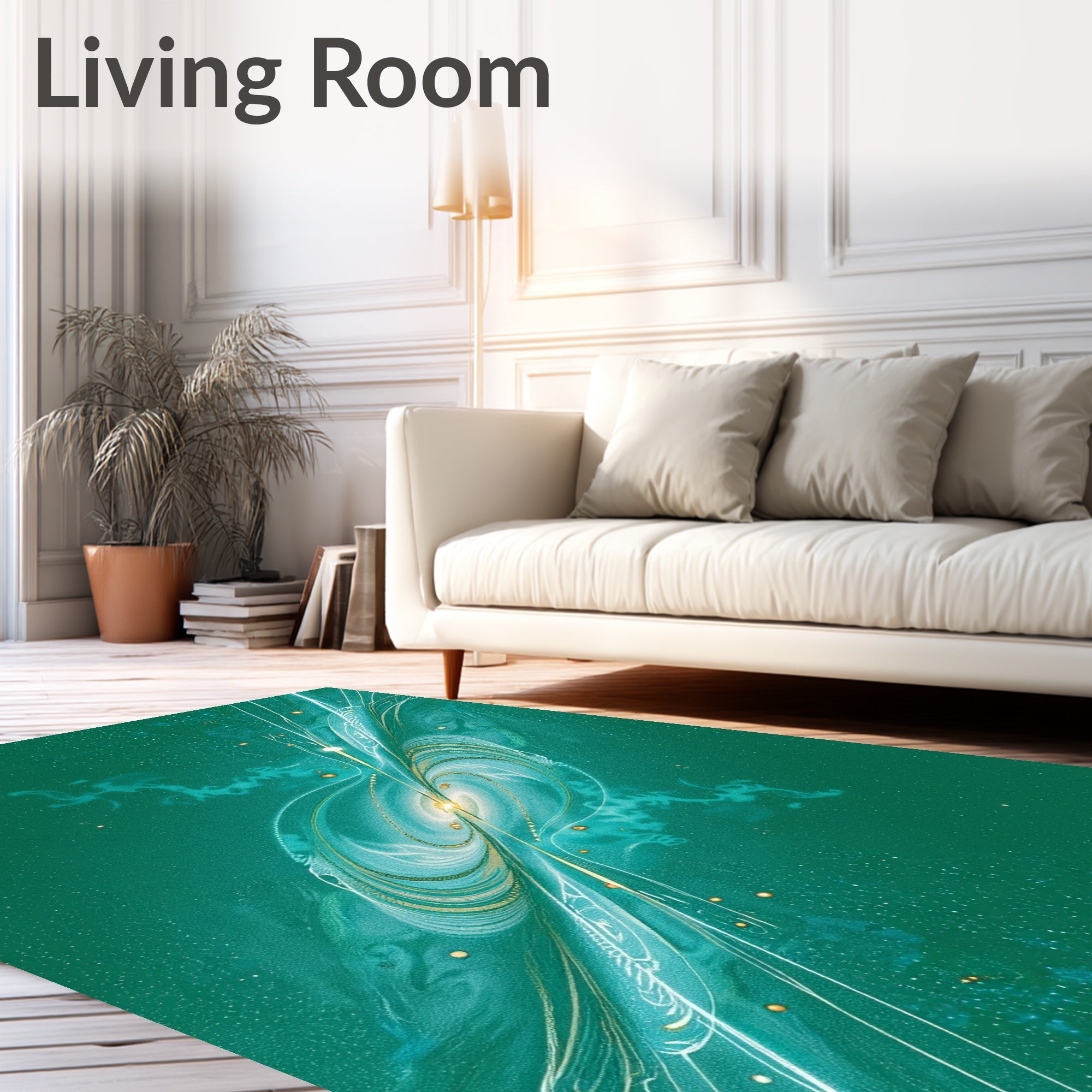 Ultra Soft Area Rug, Non Slip, Stain Resistant, Washable Area Rugs for Living Room, Bedroom, Interstellar Cloud Meteorite Shower Planetary Milky Way Path(Teal) Overview: