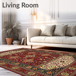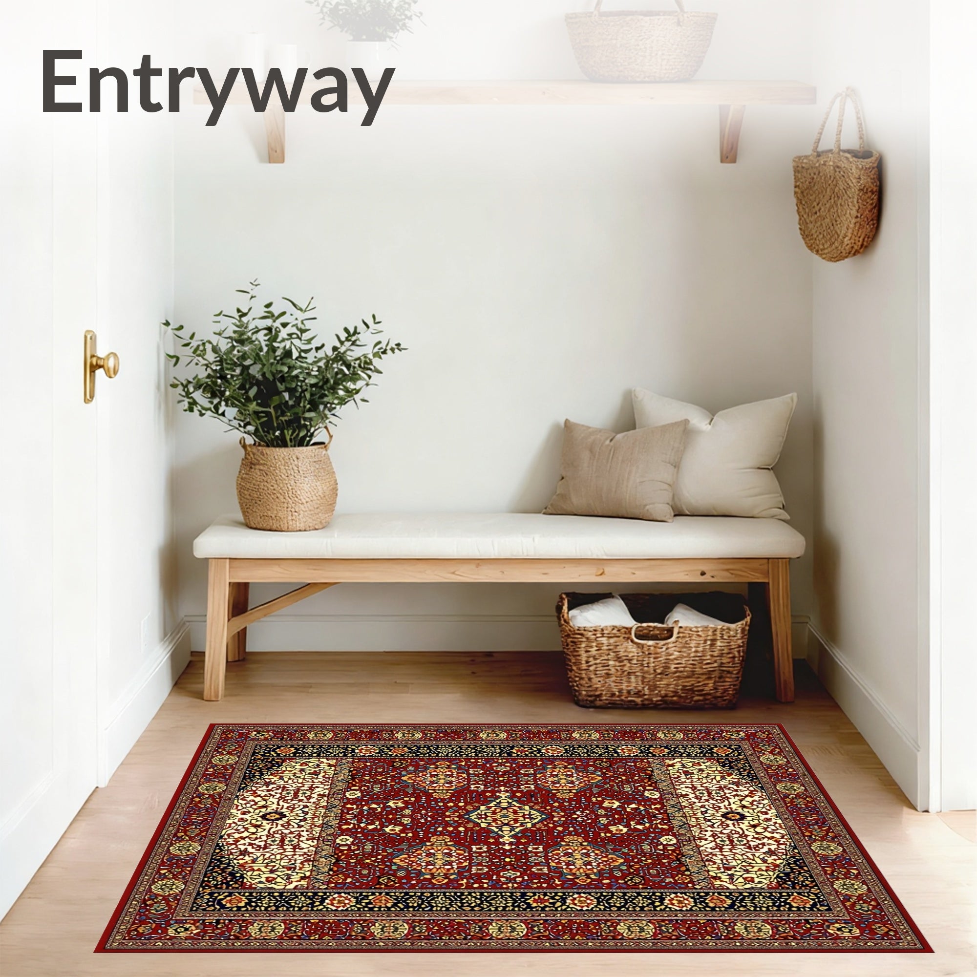 Ultra Soft Area Rug, Non Slip, Stain Resistant, Washable Area Rugs for Living Room, Bedroom, Intricate Abstract Floral Area with Geometric Patchwork Design(Red) Overview: