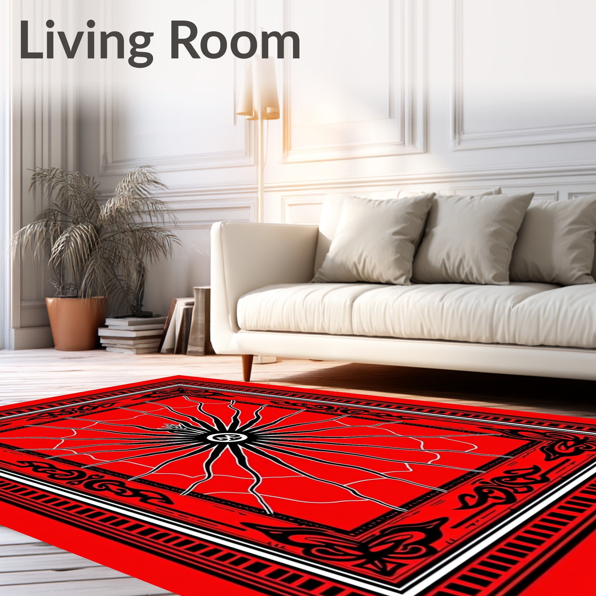 Ultra Soft Area Rug, Non Slip, Stain Resistant, Washable Area Rugs for Living Room, Bedroom, Intricate Arachnid Web With Gothic Elegance And Spooky Charm(Red) Overview: